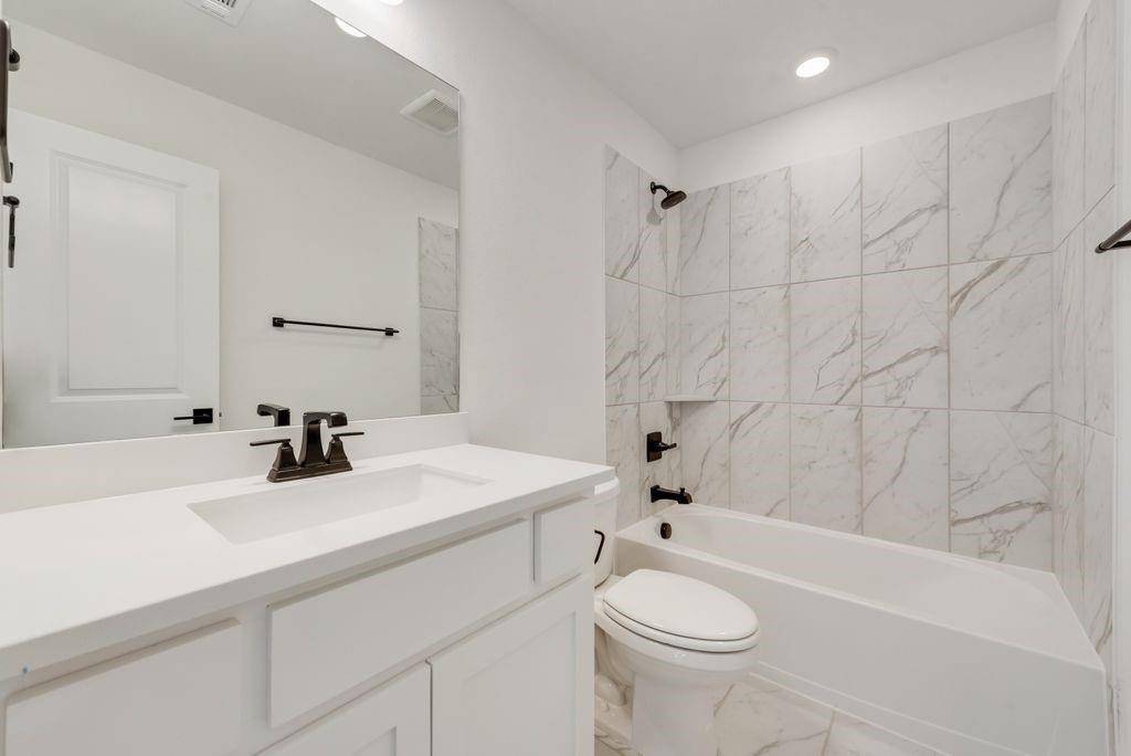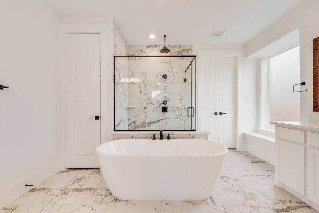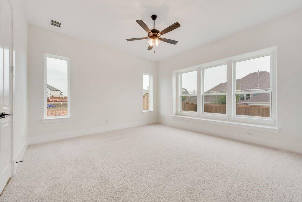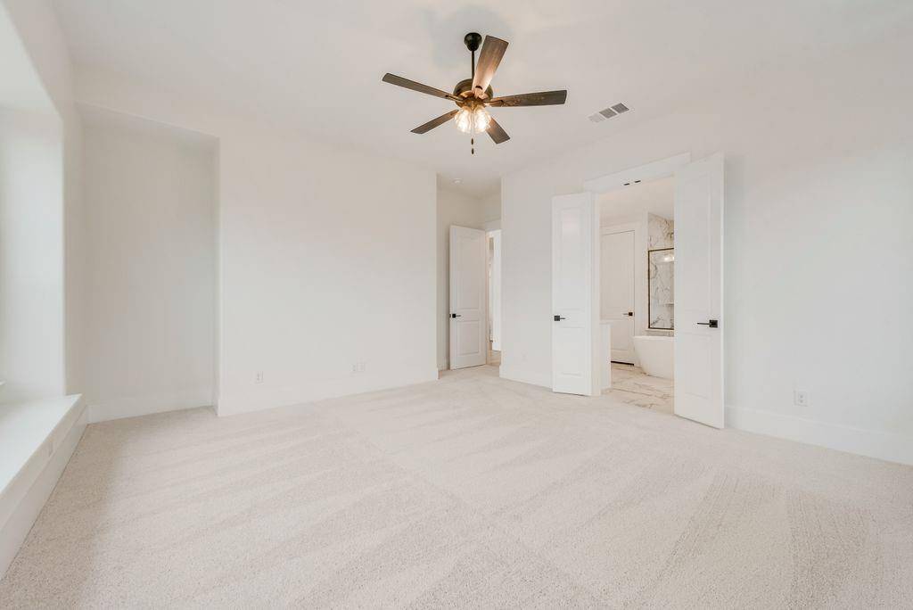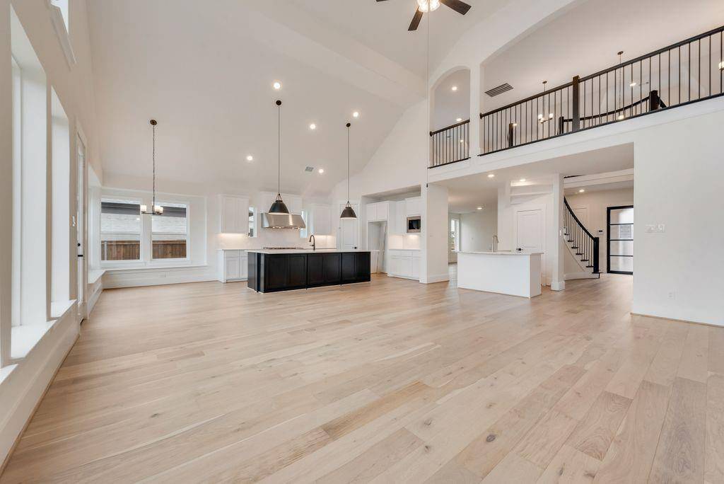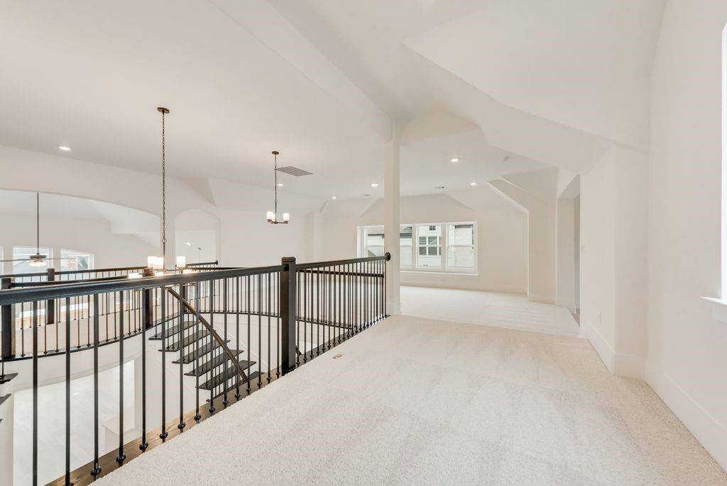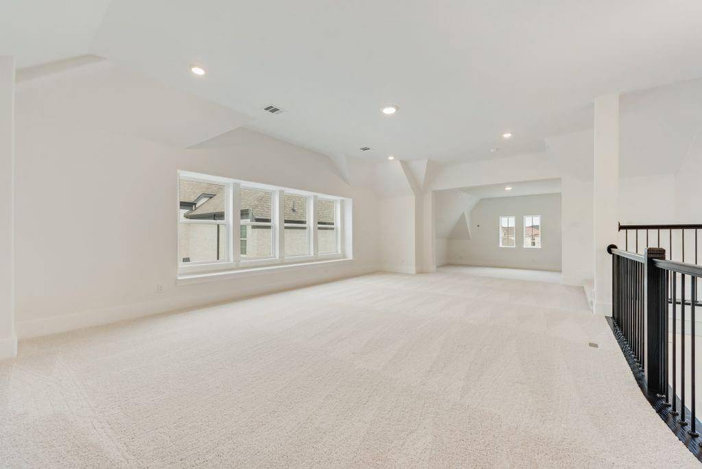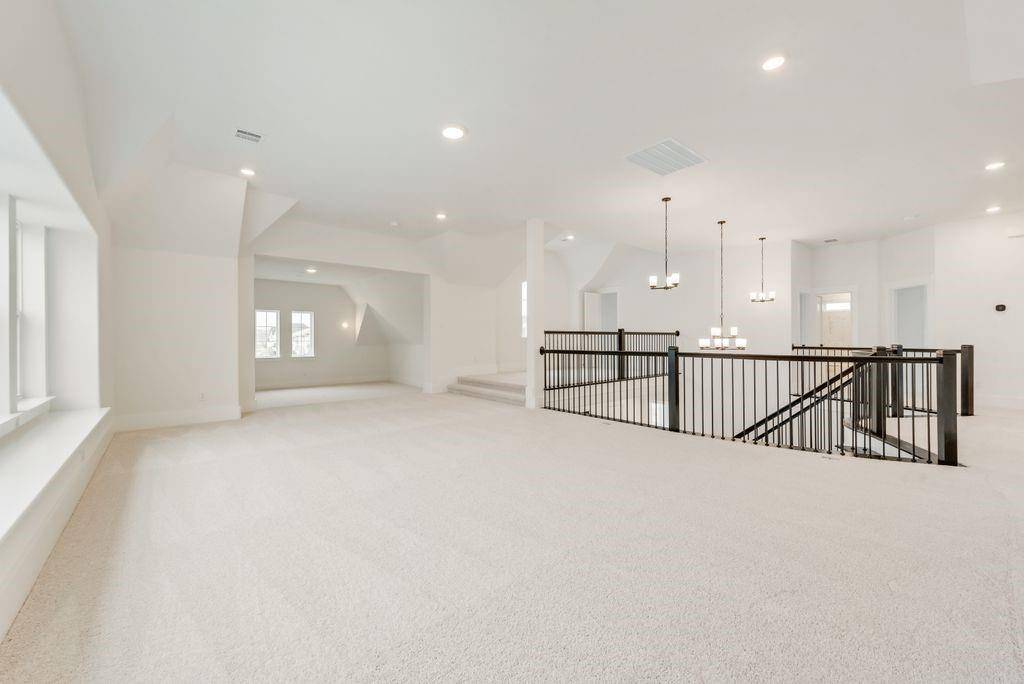 Exquisite New Grand Home at Silverleaf Estates! Welcome to this breathtaking new home with a stunning light brick exterior and onyx shingles, offering exceptional curb appeal. This masterpiece features elegant double iron front doors and a grand entry with dual staircases. Inside, the spacious and airy vaulted family room boasts beautiful wood floors and a cozy gas fireplace. The home includes formal living and dining spaces, as well as a dedicated home office with French doors. Oak stairs lead to an expansive upstairs game room, loft area, and media room, providing plenty of space for entertainment and relaxation. Gorgeous wood floors flow throughout the home. The luxurious Primary Suite is a true retreat, featuring a freestanding tub, a frameless glass shower with a rain head, and modern rectangular sinks. The home also features 8-foot interior doors and built-in flat screen TV wiring. A downstairs guest suite or additional home office offers privacy and versatility. The chef-inspired kitchen is a dream, with a commercial-grade 8-burner gas cooktop, powerful vent hood, Omegastone slab countertops, Shaker-style cabinets, and a large island with extra storage. The large laundry room provides additional storage cabinets for convenience. This home is also an Energy Star Partner, offering R38 insulation and low-E windows for improved energy efficiency.