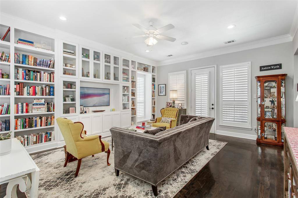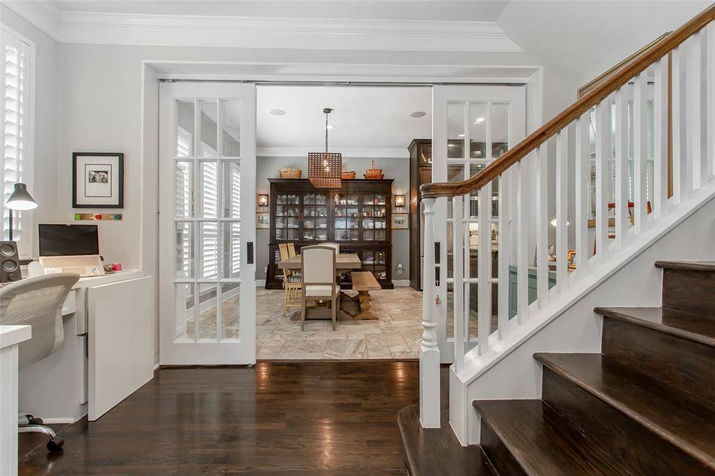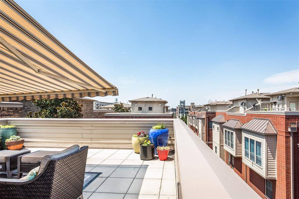 This freestanding 3 story townhouse located in a quiet gated community is the perfect mix of functionality, beauty and convenience. The first level entry is just off the two car garage and has two bedrooms and one bath. Stairs lead to the beautiful second floor living, dining, and custom kitchen. Custom built-ins and plantation shutters compliment the high ceilings and hardwood flooring. The kitchen's stunning cabinetry, oversized island and professional appliances are the cooking enthusiast's dream. The guest half bath and custom office nook round out the convenient features of the second level. The third story is a private level with a second living area that could be used for an office, game room or library. The massive primary bedroom has its own sitting area with plenty of natural light flowing in during the day. Relax in the ensuite bath with a soaker tub, separate shower and get ready in style with a custom closet system. Continue up one more level to the the rooftop patio. Unwind in the evening or spend the weekend in. The deck has space for outdoor dining and lounging while enjoying fantastic panoramic views of the city. Positioned directly across from the Dallas Farmers Market this home is also very walkable to an abundance of city parks, a dog park, attractions and the bustling dining and cultural centers of downtown. Must see to truly appreciate!
