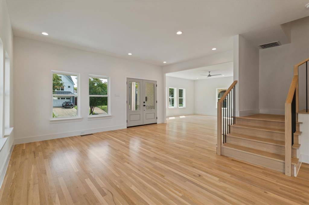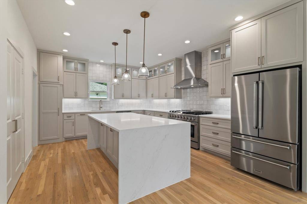This stunningly remodeled home features 5 en-suite bedrooms, blending modern upgrades with timeless sophistication. The open-concept design offers a bright, airy atmosphere, perfect for seamless living. The kitchen and bathrooms showcase sleek quartz countertops, while wide oak floors and a split wood staircase add a touch of warmth. Energy-efficient new windows, decorative lighting, and premium stainless steel appliances including a gas cooktop and waterfall island. The layout includes one bedroom on the first floor and four bedrooms on the upper level, including the primary suite with a vaulted gable ceiling, custom walk-in closet with built-ins, and a luxurious spa-like bathroom featuring a glass-enclosed shower, garden tub, marble floors, and dual vanities. The property also includes an extended driveway, an oversized garage with storage, and a private backyard with a wood deck, ideal for outdoor gatherings. Showings start Friday!