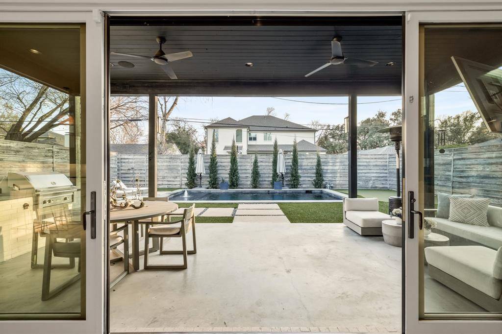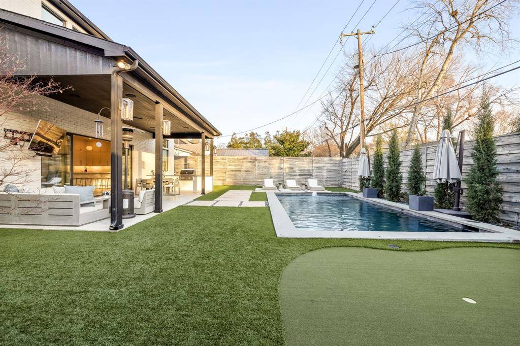 Step into luxury living with this architectural showplace nestled in coveted Greenway Crest–just moments from premier dining and shopping at Inwood Village, Inwood Pavilion and W. Lovers Lane. Custom-built by Gardner Custom Homes, this stunning transitional residence is a showcase of refined luxury, cutting-edge design and unparalleled craftsmanship. A dramatic iron glass door opens to soaring 11' ceilings, clean modern lines and warm luxury textures—flooded with natural light and layered in rich designer detail. Every element is curated: from the white oak floors and floor-to-ceiling windows to Phillip Jeffries wall coverings, Restoration Hardware lighting, Sonos sound system plus marble, leathered granite and designer tile accents. The seamless indoor-outdoor flow elevates both daily living and entertaining. At the heart of the home, the open-concept great room, with its striking Calcutta marble fireplace and dramatic leathered-granite wet bar, seamlessly flows to the dining room and chef's kitchen—complete with an immense marble island with seating for 4, abundant custom cabinetry, leathered granite perimeter counters and premier SubZero, Wolf & Asko appliances. Expansive sliding glass doors open wide to the covered terrace, creating a true indoor–outdoor sanctuary ideal for hosting or unwinding. Also on the main level: a serene guest suite with stylish bath and an intimate study wrapped in Phillip Jeffries grass cloth & a remarkable Fort Knox walk-in vault room—perfect for valuables or as a tornado shelter. Upstairs, 4 ensuite bedrooms, a vaulted library & generous game room await. The luxurious primary suite is a private retreat, featuring a sitting area, boutique-style closet & an immense Carrara marble spa bath. Outside, the backyard is a true resort-style escape. A covered terrace with bar sink & Lynxx grill overlooks a SYNlawn turfed yard with putting green & a sparkling pool. Add'l amenities: oversized attached 2-car garage & LUMA Surveillance cameras.