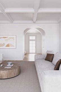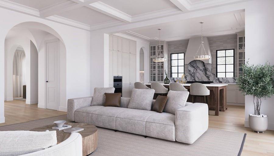Step inside to light-filled interiors where clean architectural lines, high ceilings, and custom details come together effortlessly. Expansive living spaces flow seamlessly to a chef's kitchen anchored by premium materials, bespoke cabinetry, and thoughtfully designed workspaces—perfect for entertaining or daily life.