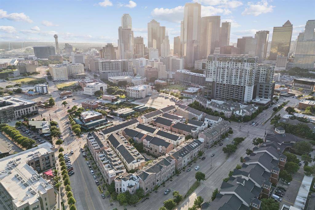 Live Elevated in the East Quadrant, Refined Interiors & Walkable Urban Living. Welcome to 2138 Aylesport, an upscale 3-bedroom, 3.5-bath townhome in the sought-after Farmers Market District offering over 2,500 sq. ft. of sophisticated living just steps from Downtown and the Dallas Farmers Market. With unbeatable walkability and quick access to highways, this is urban living at its best. Soaring ceilings, wood floors throughout, and designer lighting set the tone in this bright, open-concept home. The island kitchen, that is as practical as it is stylish, is complete with granite countertops, stainless steel appliances, a gas cooktop, and a large walk-in pantry. Plantation shutters frame every window, and a tranquil patio overlooks a shaded courtyard perfect for morning coffee or evening unwinding. Upstairs, the oversized primary suite is a true retreat, featuring a spa-like bath with a standalone shower, double vanity, and a massive walk-in closet that's sure to impress. The private guest suite offers its own ensuite bath for ultimate comfort and separation. Cap it all off with a rooftop terrace boasting breathtaking views of the Dallas skyline—perfect for twilight dinners or weekend entertaining. Plus, enjoy the peaceful courtyard just outside your door and a short stroll to the private pool. Easy highway access to I-75, I-30, and I-35 ensures you're always just minutes from anywhere in the city.
