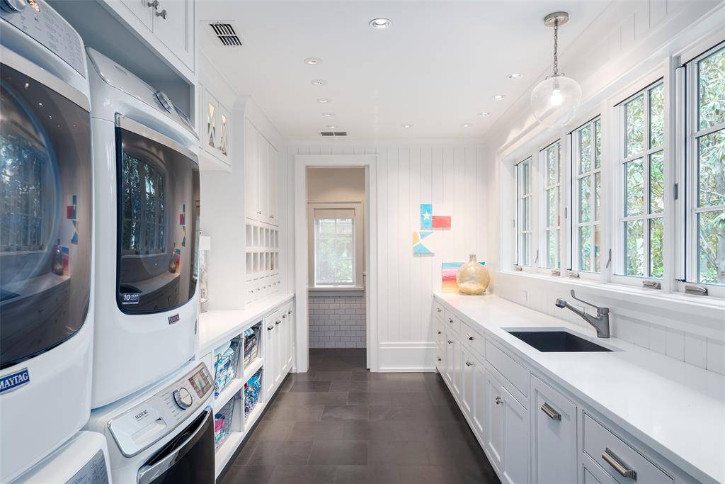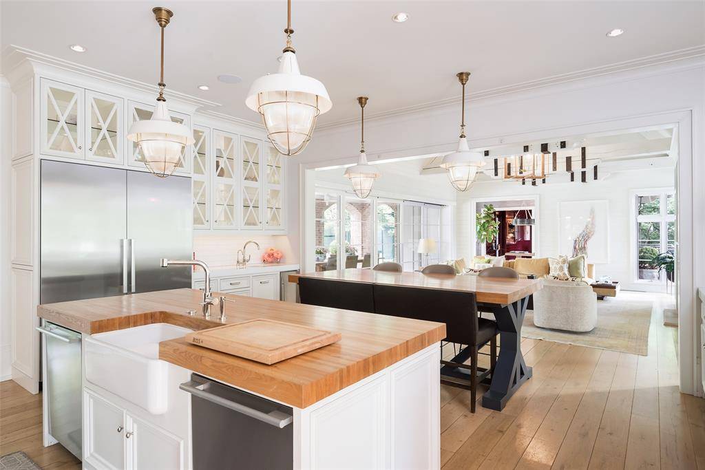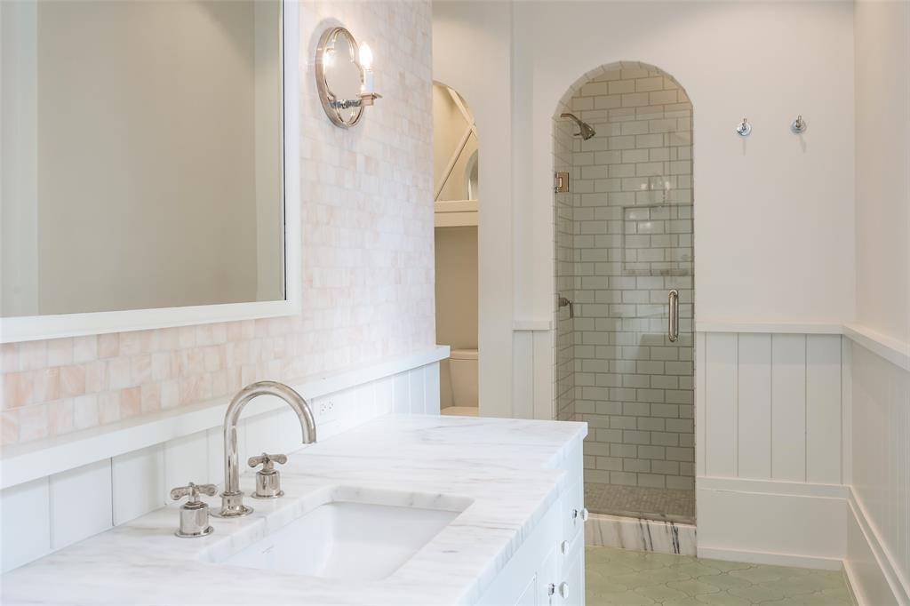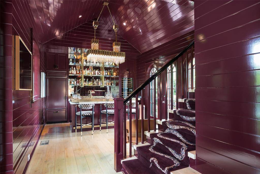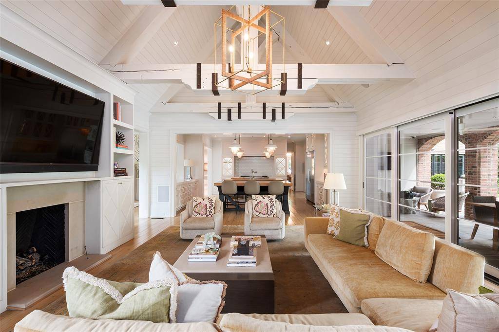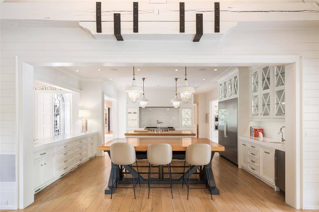 Set on an elevated 1.24-acre lot (where the original Murchison estate resided) within the ultra-private, gated and guarded community of Los Arboles, this Hamptons-inspired estate originally designed by Wilson Fuqua was completely transformed via a to-the-studs remodel circa 2017 by MORE Design + Build, by lead designer, Chad Dorsey, into a fresh vision of luxury. This exclusive enclave of just 31 estate homes is a hidden gem in Preston Hollow. With tree-lined streets, peaceful ponds, and a resort-like atmosphere, it's hard to believe you're only minutes from Dallas' top private schools, luxury shopping, and world-class dining. The thoughtful floor plan seamlessly blends modern amenities with comfortable living. Six primary-sized bedrooms and nine baths unfold across five distinct living areas. The open-concept kitchen and family room serve as the heart of the home, with custom cabinetry, an incredible separate prep area with pocket doors, and sliding glass doors that open completely to your backyard oasis. Multiple access points lead to private balconies and outdoor living areas blurring the line between indoors and out. On the main level, you'll find elevated designed spaces: a home office, media room, gym, and a moody speakeasy-style bar that is featured in Dorsey's recent book, Relaxed Luxury. Just above a private guest suite with private entrance and balcony offer privacy for long-term guests. Upstairs, the primary suite feels like a private escape with a serene balcony overlooking the pond, dual walk-in closets, and a marble-wrapped bathroom. Four additional unique oversized en suite bedrooms round out the thoughtfully designed second floor. Outdoor living areas boasts a covered pavilion with a fireplace, separate screened in patio, a regulation lighted tennis court, putting green, pool and spa. This property features a 4-car garage with port cochere and additional parking pads for one of the best off-street parking arrangements in the development.