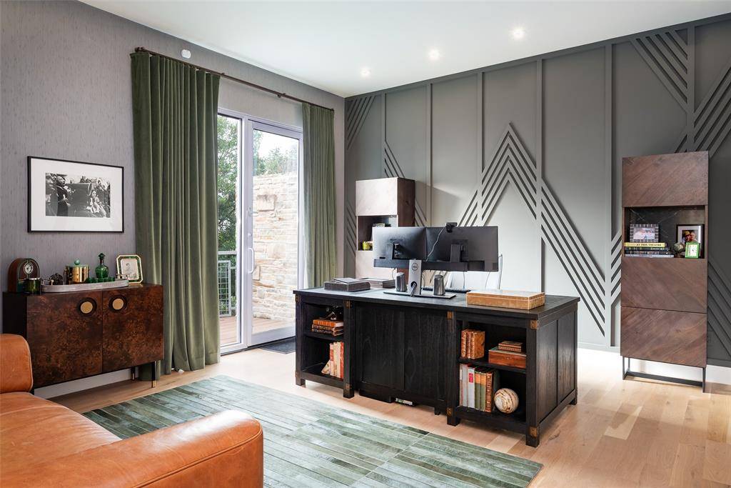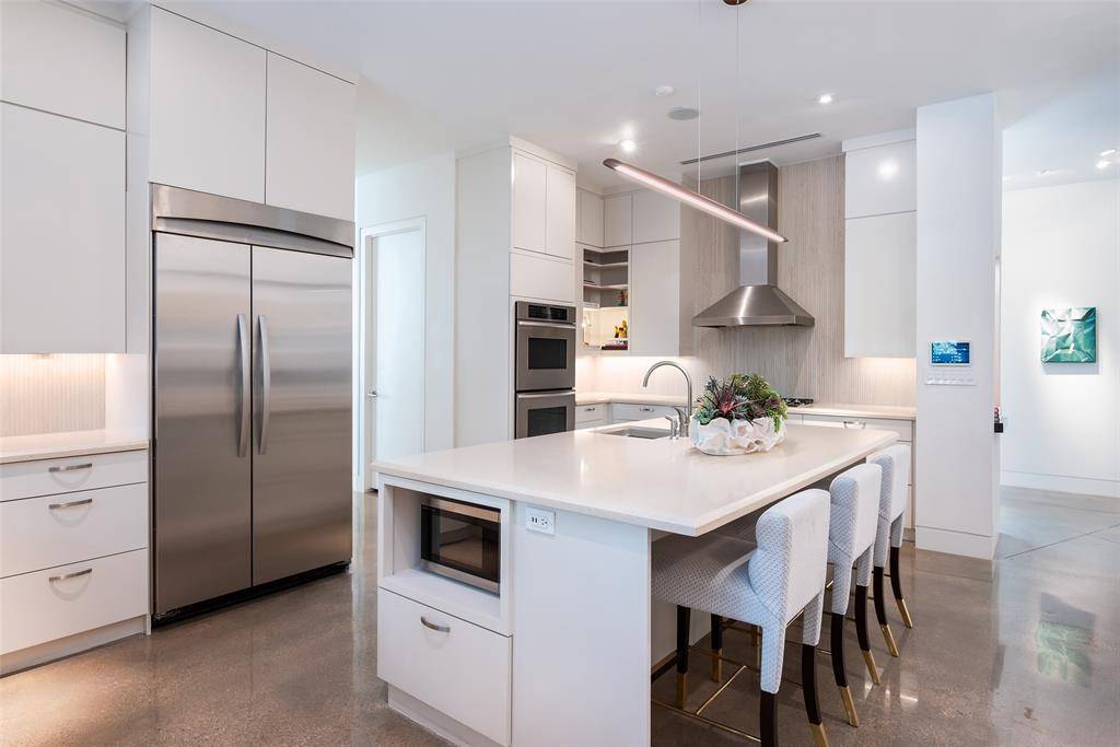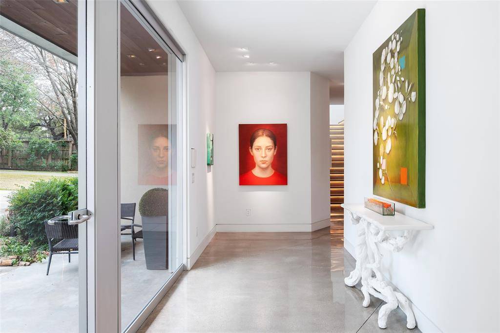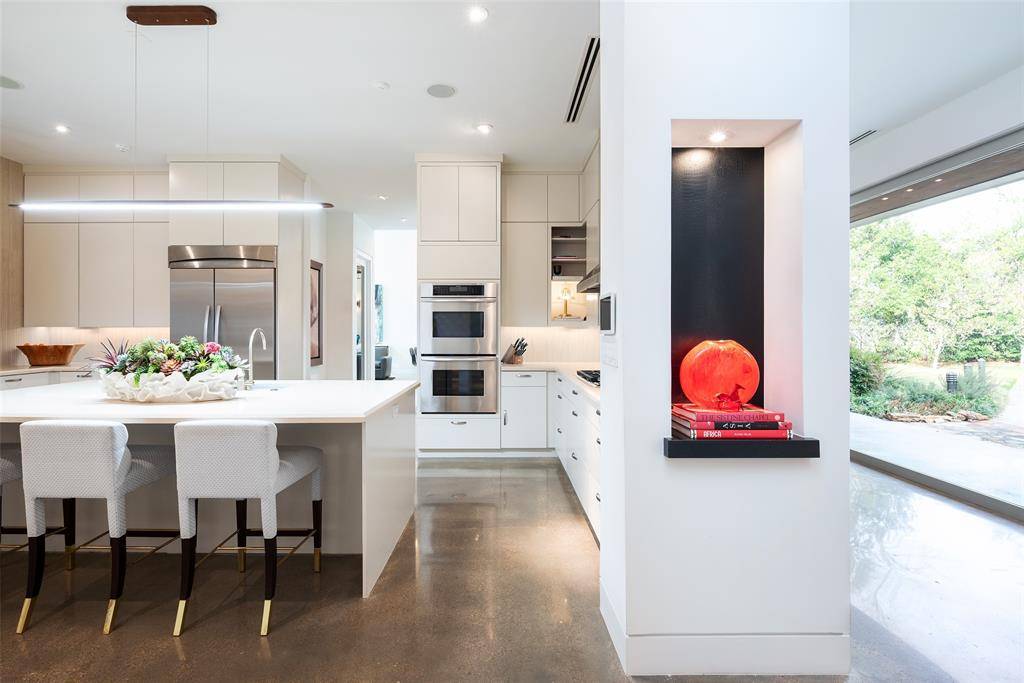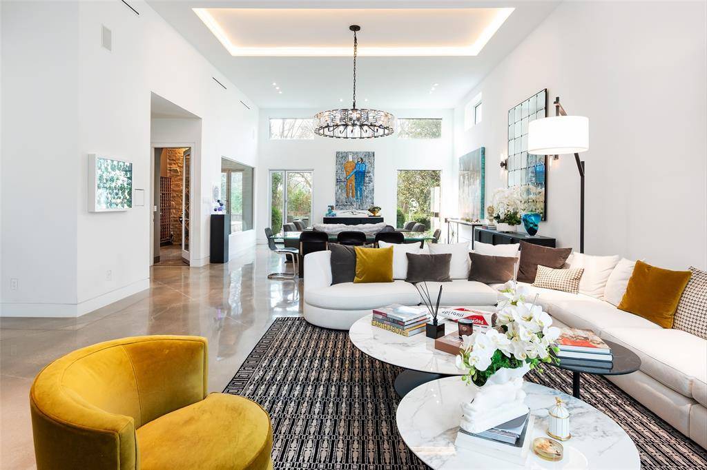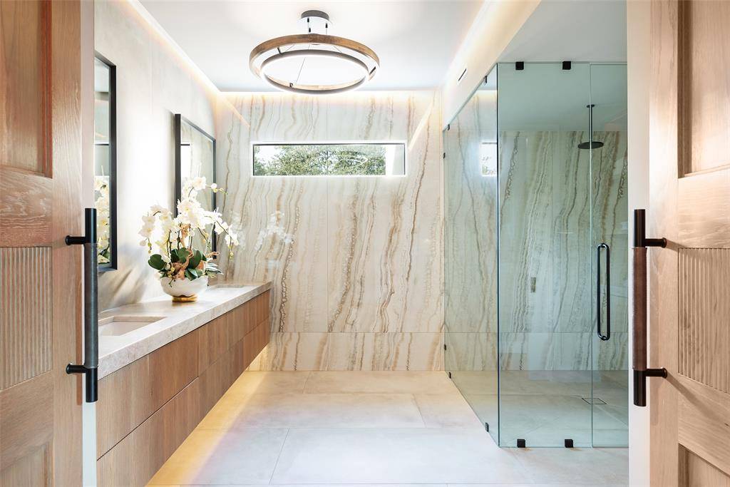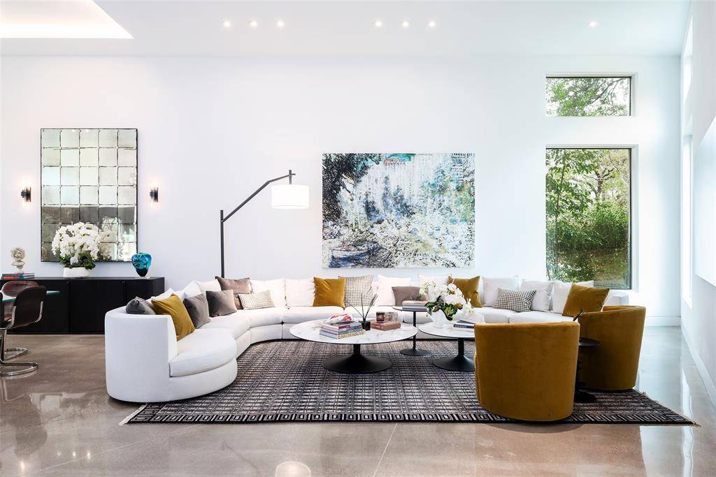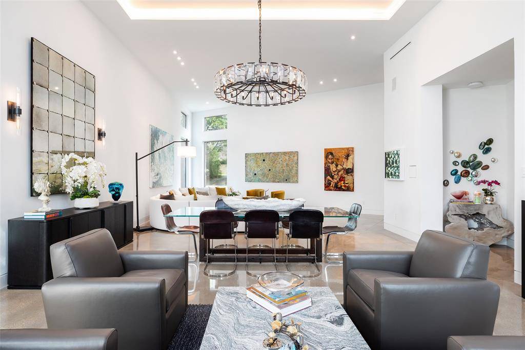 Tucked beneath mature trees on just under an acre, this fully reimagined modern estate offers exceptional privacy and design. The property features over 7,000 square feet of air-conditioned living space and garage capacity for seven vehicles, all climate-controlled and seamlessly integrated into the home. Expansive living areas showcase soaring ceilings and generous wall space ideal for art collections. Additional highlights include a glass-enclosed wine room, media room, and oversized entertaining spaces. The primary suite offers a private retreat with a spa-inspired bathroom. Meticulously updated with contemporary finishes throughout, the home balances architectural integrity with modern comfort. Lush landscaping surrounds the residence, creating a private sanctuary ideal for luxury living and entertaining.