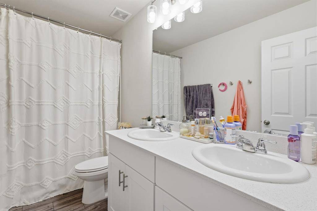 A separate laundry room adds convenience and storage. The secondary bathroom includes dual sinks, offering practical functionality for shared use. Each space has been arranged to feel cohesive and comfortable while remaining neutral and adaptable to a variety of lifestyles.