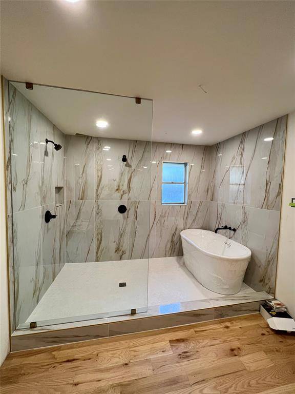 Master bedroom downstairs has a huge bathroom with a walk-in his & her shower, freestanding tub, custom large walk in closet with a stunning chandelier…