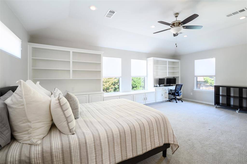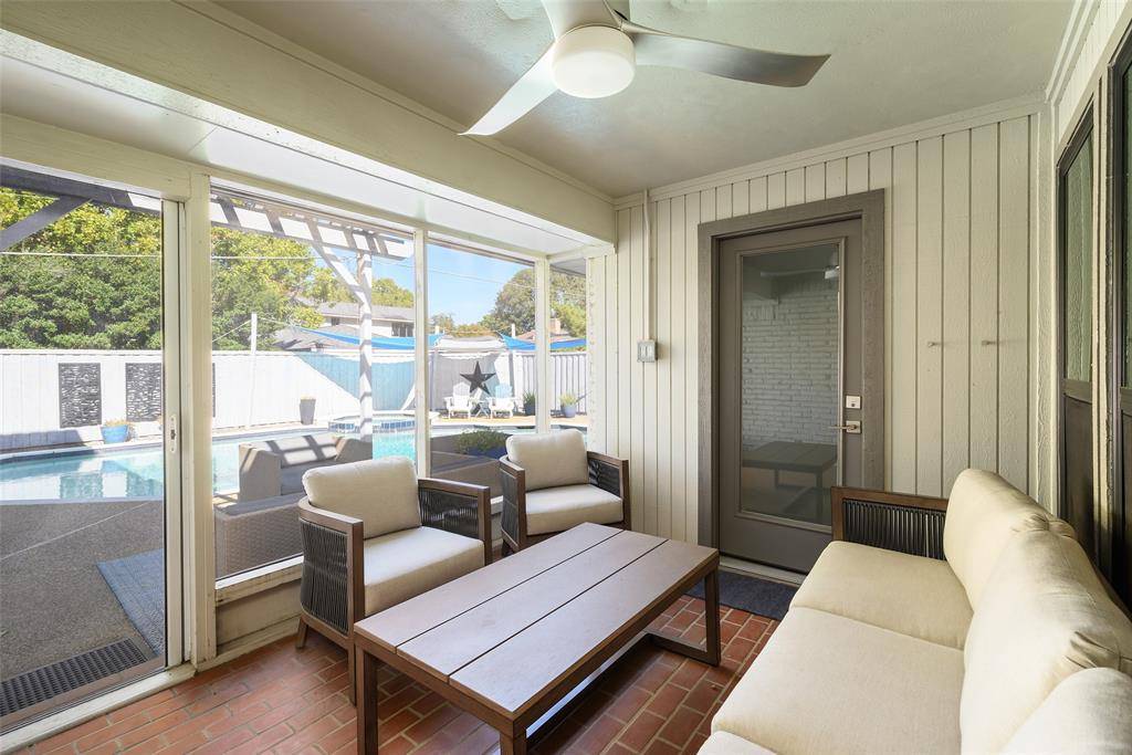 Welcome to 6639 Clearhaven Circle, a beautifully updated home nestled along a quiet, tree-lined interior street in the heart of Prestonwood. Offering more than 3,100 square feet of thoughtfully designed living space, this 4-bedroom, 3.5-bath home blends comfort, versatility, and timeless style. Soaring vaulted ceilings and abundant natural light enhance the open, floor plan, creating a seamless flow through the main living areas. A striking double-sided fireplace anchors the space. The updated kitchen features a large center island, stainless steel appliances, and a functional layout. The space connects beautifully to both the formal dining room and the breakfast nook. The first floor primary suite features a spacious walk-in closet and a well-appointed ensuite bath. In the same wing of the home, two additional bedrooms share an updated Jack-and-Jill bath, offering flexibility for family or guests. On the opposite side of the home, the upstairs ensuite bedroom or guest suite provides exceptional versatility. Complete with built-ins and a walk-in closet, the space can easily function as a fourth bedroom, game room, or dedicated home office. A screened-in patio creates a seamless indoor-outdoor transition an ideal setup for poolside entertaining. Step outside to a private backyard retreat featuring a sparkling pool and spa, perfect for relaxing afternoons or hosting friends and family year-round. Additional highlights include a dedicated utility room, conveniently located off the kitchen. A beautiful mature tree in the front yard provides a stunning canopy, enhancing the home's curb appeal and welcoming presence. Located just minutes from Campbell Green Park, with pickleball courts, ball fields, a splash pad, and a dog park, the home supports the active and connected lifestyle Prestonwood residents love. Zoned to highly regarded Richardson ISD, this home offers a wonderful opportunity to enjoy the enduring charm of one of the area's most desirable neighborhoods.
