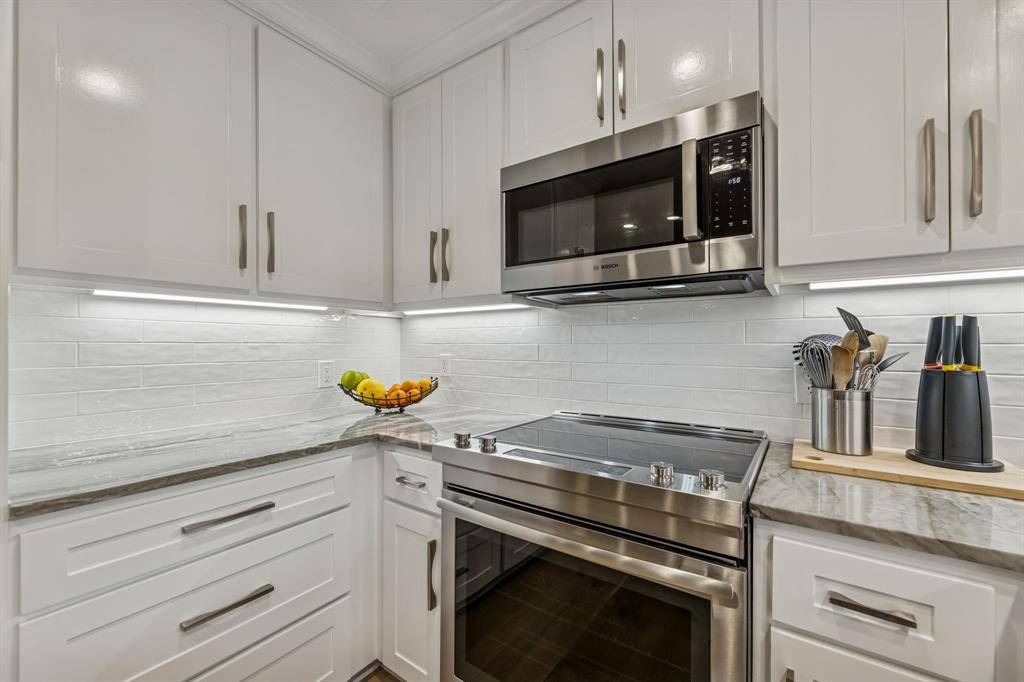 Refined luxury defines this fully renovated 2-bedroom, 2-bath residence (approx. 1,329 sq. ft.) with two covered parking spaces just outside your back door. Thoughtfully redesigned with hardwood floors throughout the living areas, high-end stainless steel appliances, custom cabinetry with soft-close features, and premium custom countertops. The chef's kitchen is enhanced by a Kraus custom sink system, under-cabinet lighting with adjustable settings, and elevated finishes throughout.