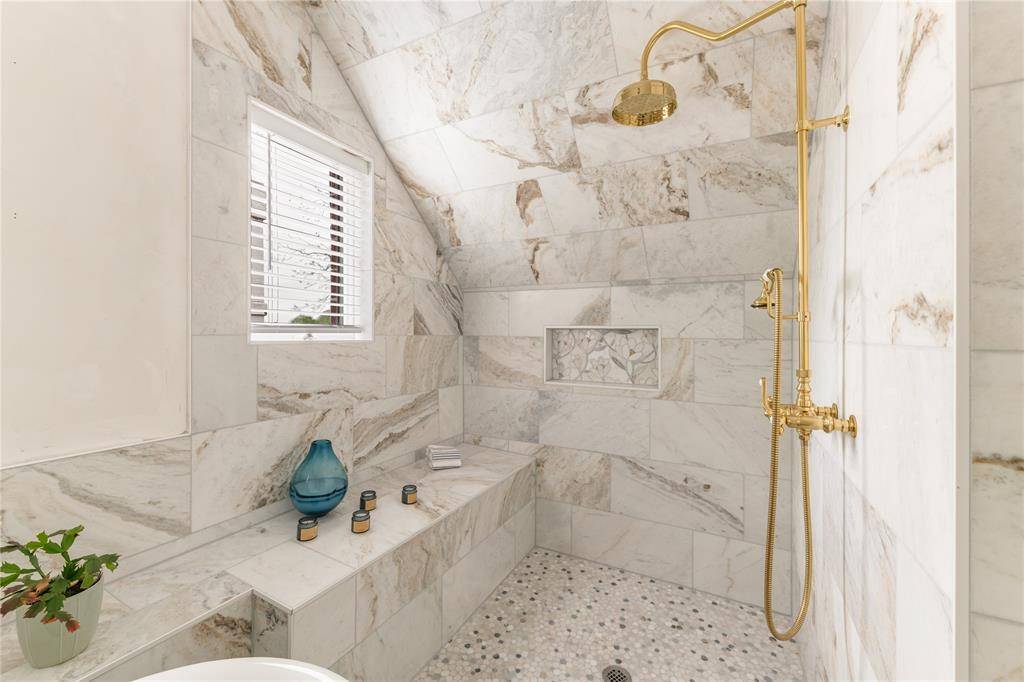 Soaring 10-foot ceilings, solid hardwood floors throughout, and a classic pier and beam foundation set the tone from the moment you enter. The chic kitchen features quartz countertops, high-end appliances, a new electric oven (2025), two walk-in pantries, and a Reverse Osmosis Ultimate Series water system. The new primary suite stuns with marble flooring, a cast-iron soaking tub, and scenic oak canopy views and has TWO large Walk-in closets. Every bathroom has been fully renovated, marble in the primary and second floor west bath, porcelain in the second floor east bath, with cast-iron tubs throughout.