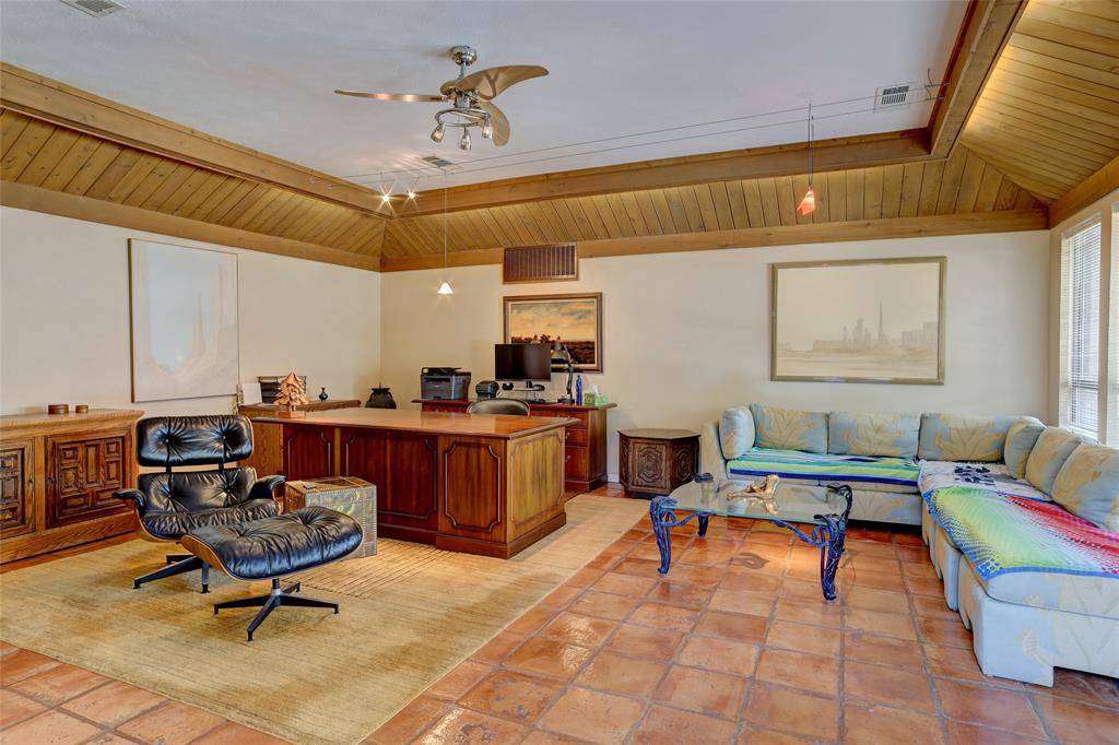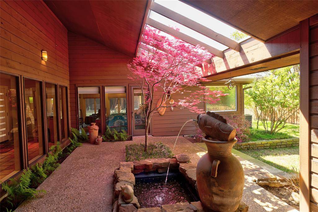 Original owner is selling one of a kind, amazing property that has TWO of everything! Built on TWO lots with TWO structures, TWO kitchens, TWO patios and TWO garages sitting on either side of a gorgeous pool and patio. The totally private, modern home has vaulted ceilings and walls of windows that look out to the pool from the primary bedroom and the courtyard patio fountain from the spacious living area with fireplace and wet bar. Sunset views can't be beat from here! The main house has been tastefully updated over the years with marble or granite countertops in all 3 full baths and kitchen. Privacy is key with the primary bedroom and nursery (or office) split from the other two bedrooms. The nursery is off the main bedroom and would be ideal as a home office or sitting area. The second building is being used as an office, but has a full kitchen, full bath, and a room that could easily be converted to a spacious walk-in closet. The modern architecture continues here with another wall of windows overlooking the pool and outdoors. This space would make a perfect in-law or nanny living quarters and has an attached extra large 2-car garage complete with a cedar closet. (TWO attached garages means four covered parking spaces! Bring your boat and park it here.) All of this is surrounded by a beautiful yard with plenty of space for children to play and pets to run. This beautiful property is truly unique and represents a terrific opportunity for a grand lifestyle in a wonderful Lake Highlands neighborhood that feeds to Merriman Park elementary. You have to see it to really appreciate it but don't wait too long or you may miss out.