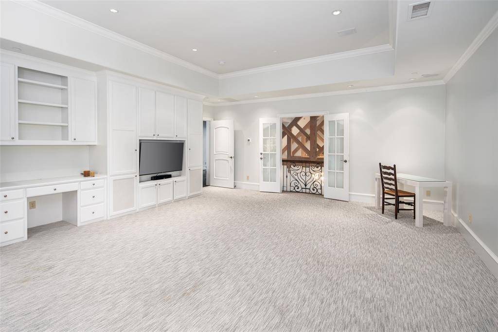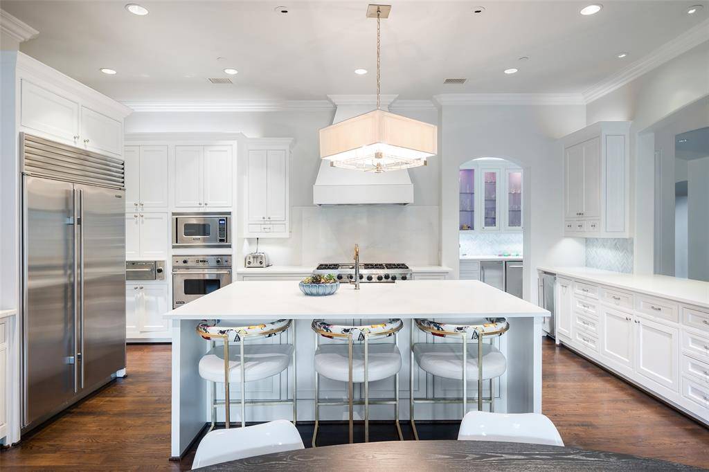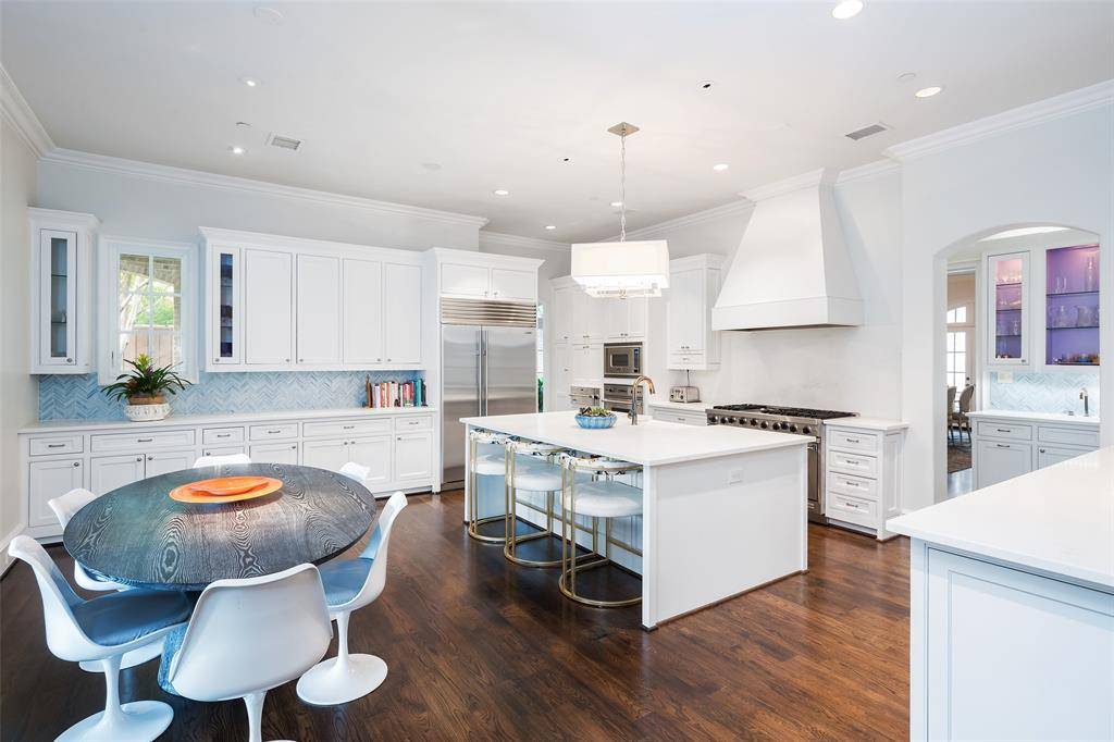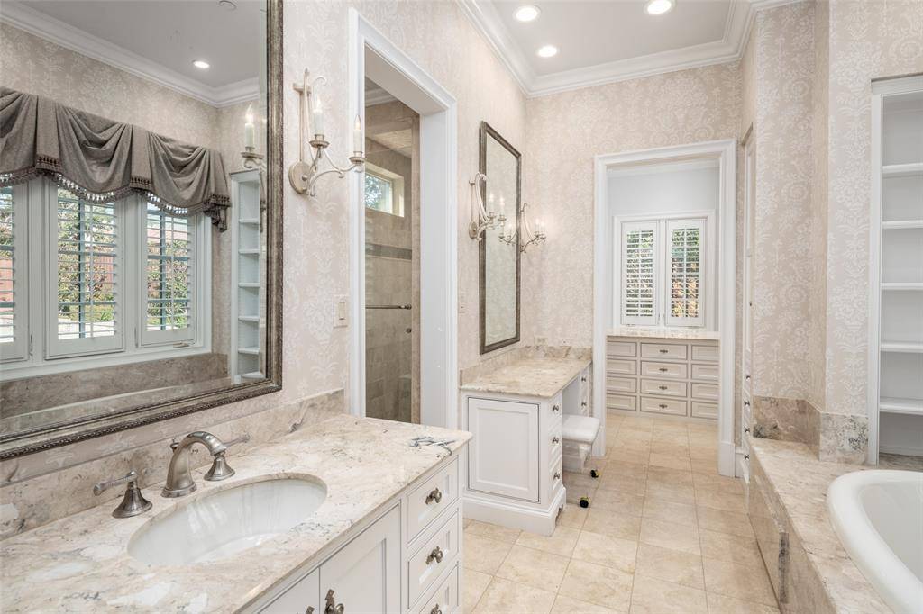 Spectacularly updated, this timeless Country French estate is ideally situated on one of the most prestigious streets in Preston Hollow, framed by a grand, tree-lined boulevard. Set on an expansive half-acre lot, the property offers a serene setting with mature trees, lush gardens, and beautifully curated landscaping. Designed by Robbie Fusch and built by Oscar Ponder, the home seamlessly blends classic architecture with refined, modern updates. The home's understated elegance gives way to exquisite designer interiors. Rich details include gallery-style hallways trimmed in stone and striking, soft color palettes of paint and tile. The private study features a fireplace with a sleek marble mantle and corner windows that flood the space with natural light. Gracious formal living spaces include a large formal room with fireplace, flowing seamlessly into the dining room and opening to an extended loggia with a stunning cloister-vaulted ceiling. French doors lead to a tranquil garden and fountain, creating an effortless indoor-outdoor connection ideal for entertaining. The inviting family room showcases handsome truss beams and a statement Murano glass chandelier, opening to a gourmet island kitchen with crisp white cabinetry and designer tile backsplash. The downstairs primary suite has its own sitting area and fireplace overlooking the backyard. A dual-bathroom layout provides exceptional space and storage. Outdoor living is impressive, with a covered patio and a large fireplace, perfect for both relaxing and dining. The backyard is anchored by a resort-style pool and raised spa, surrounded by lush greenery. Upstairs, four spacious bedrooms each offer en-suite baths, a large game room and an additional flexible space. This exceptional Preston Hollow residence offers a rare combination of architectural beauty, thoughtful updates, and premier location.