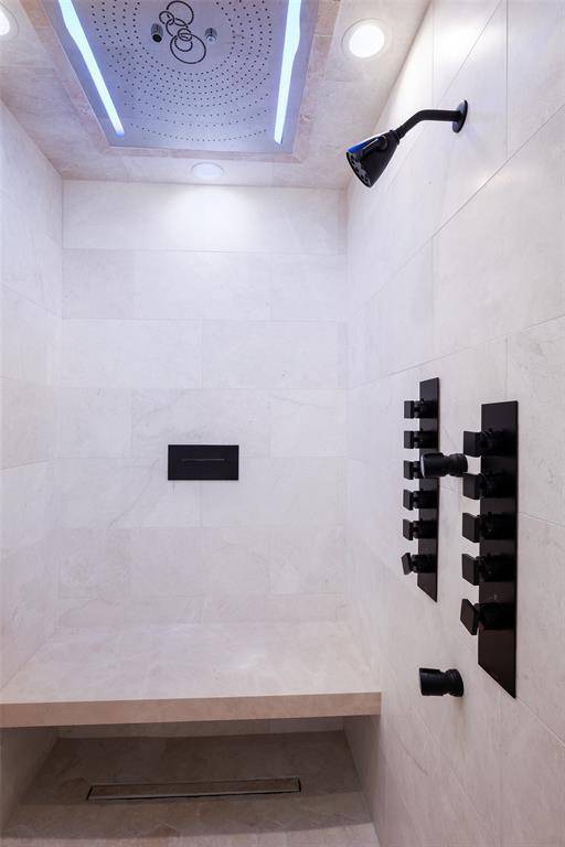 The main-level primary suite offers a spacious sitting area and spa-inspired bath with steam shower, soaking tub, dual vanities, and a custom walk-in closet with washer-dryer connections. A downstairs guest suite provides comfort for visitors, while four additional ensuite bedrooms upstairs – all with designer finished bathrooms - offer flexibility for office, fitness, or media space, along with a large game room.