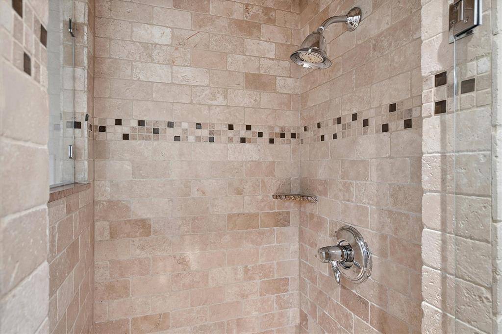 The Primary Suite Includes A Walk-In Closet, Ceiling Fan, And A Luxurious Bath With Double Sinks, A Large Walk-In Shower, And Heated Floors. The Secondary Bedroom Includes A Ceiling Fan And Two Closets. The Secondary Bath Provides A Granite Sink And Counter And A Walk-In Shower With Inlaid Stonework.