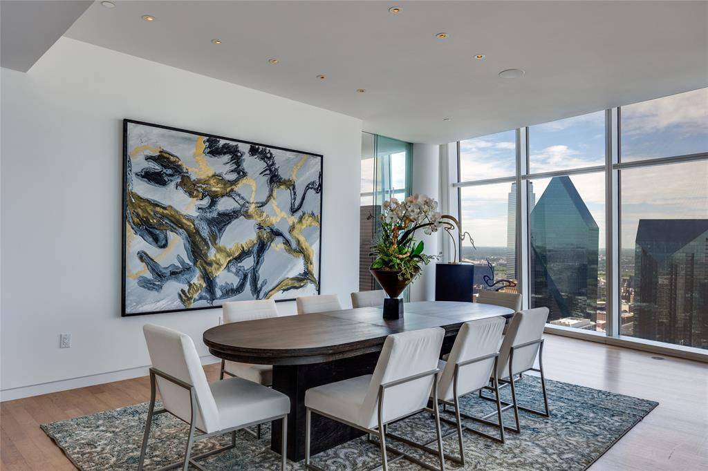 Sophisticated custom home located on the desirable North side of Museum Tower with jaw dropping views of downtown, Klyde Warren and Uptown. A private elevator ride delivers you directly to your home. Kitchen offers Meile appliances, wine tower and abundant storage. Floor to ceiling windows w motorized shades. Large primary w wrapping terrace, Sky room and large open living dining areas.