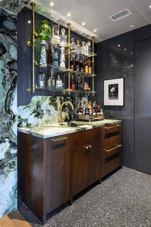 Every finish was curated without compromise, featuring French oak herringbone floors and hand-applied Venetian plaster walls that add warmth and depth. The chef's kitchen is anchored by a striking lilac marble island and outfitted with a full suite of Wolf appliances. Open-concept living spaces flow seamlessly to a large private terrace, complemented by a fully integrated A-V system for effortless entertaining.