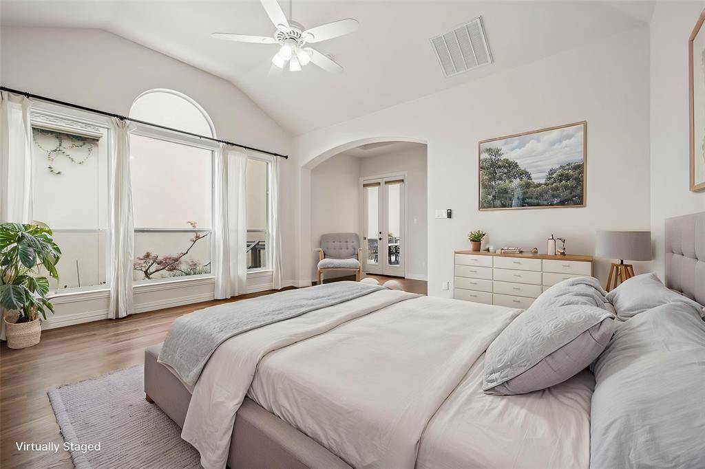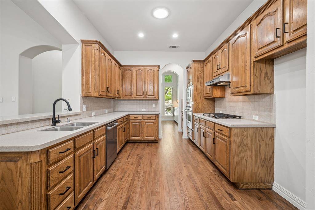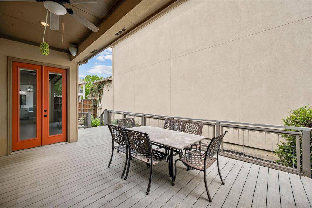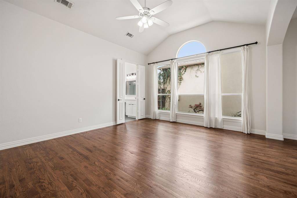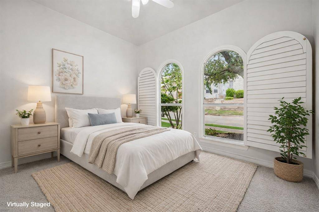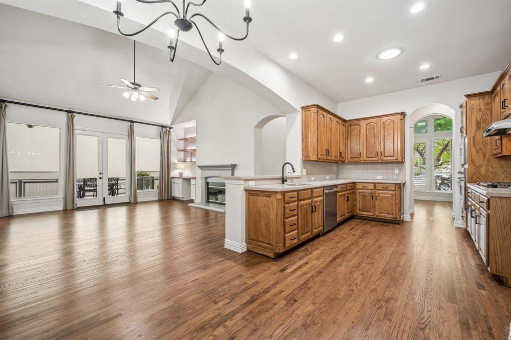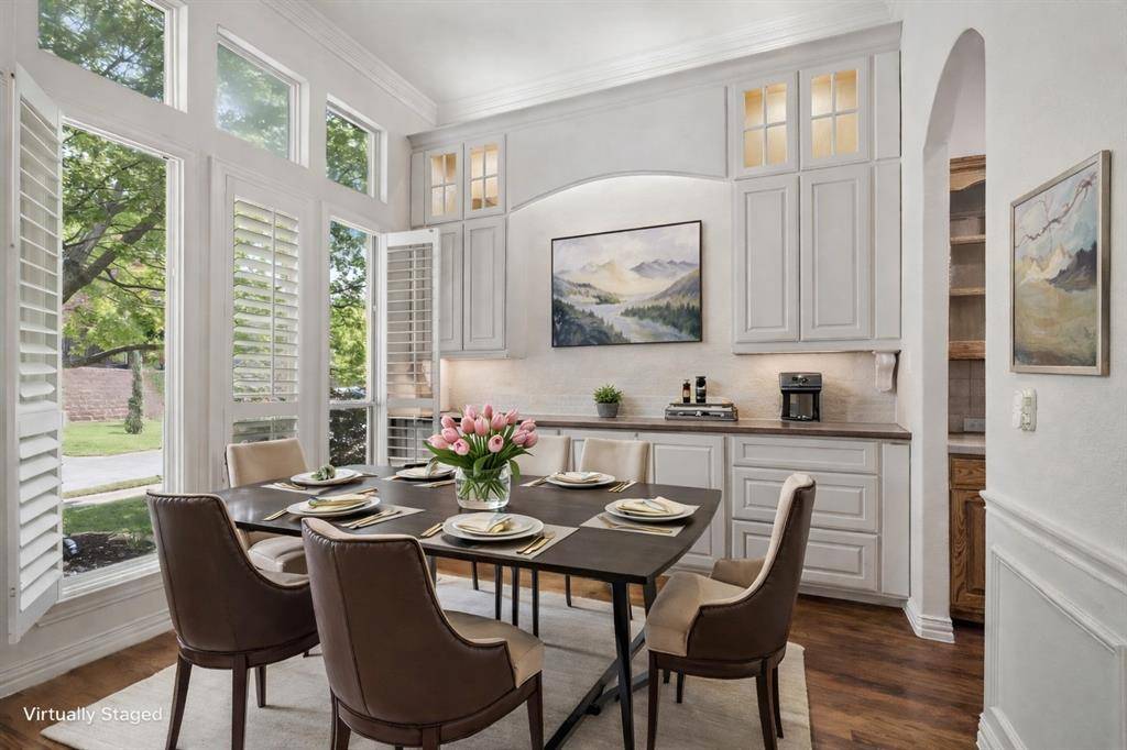 Nestled in the sought-after gated community of University Park Estates - Las Colinas, this charming one-story home combines timeless architecture with modern, open-concept living. Designed for both comfort and style, this 3-bedroom, 2 bath home radiates warmth, elegance, and exceptional craftsmanship throughout. This Certified Pre-Owned Home provides peace of mind with a recent inspection, 1 year home warranty, and Love This Home Guaranty. If you're not happy within 12 months, we'll sell it for FREE! The heart of the home is a central fireplace with gas logs, connecting the living room and kitchen to create a perfect flow for entertaining or relaxing. The open living area features vaulted ceilings, and custom built-ins, enhancing the sense of space and architectural detail. The gourmet kitchen is appointed with high-end stainless-steel appliances, including a Viking oven, microwave and a GE gas cooktop, complemented by a walk-in pantry and a butler's pantry that leads into a formal dining room adorned with lighted built-in cabinets. It's an ideal layout for hosting gatherings or enjoying intimate dinners at home. Step outside to the large side deck, where indoor-outdoor living comes to life. Surrounded by manicured gardens, this tranquil space is perfect for dining, morning coffee, or evening relaxation. Rich hardwood floors extend through the main living areas and the primary suite. The spacious owner's suite includes a sitting area, and expansive arched windows with electric shades. The primary bath has been fully remodeled and showcases dual vanities, garden soaking tub, frameless glass shower, and a large walk-in closet. Recent 2024 - 2025 upgrades include new HVAC, new dishwasher and GE cooktop. Residents of University Park Estates enjoy resort-style amenities, including a community pool, clubhouse, fitness center, playground, and courts for volleyball, basketball, and tennis. Just beyond the gates, enjoy scenic walking trails and duck ponds along Rochelle.