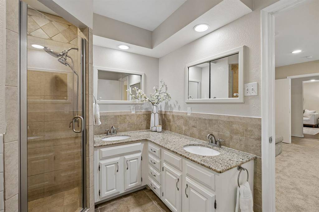 The spacious primary suite is a true retreat with a walk-in closet, en suite bath, and dedicated vanity area. An oversized two-car garage provides ample storage, adding to the home's functionality.