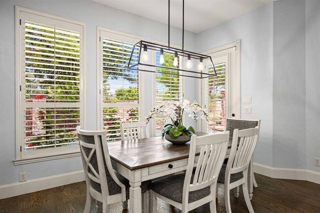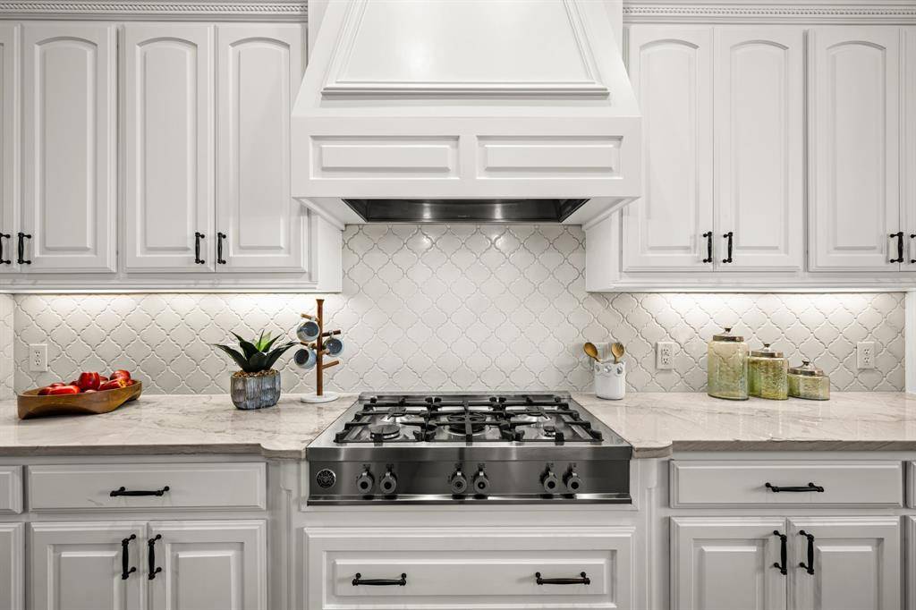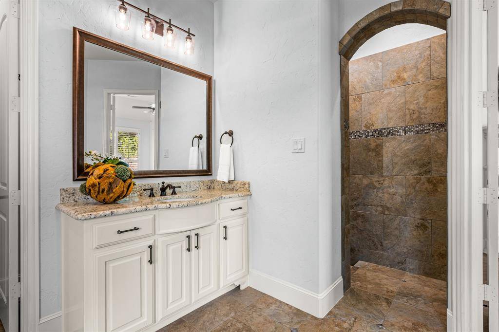 Outdoor spaces read like a private resort: a sparkling pool with cascading waterfall, outdoor kitchen with built-in, gas grill, firepit and a tree shaded arbor create multiple alfresco rooms for dining, relaxing and lively gatherings. The landscape design emphasizes privacy and flow between interior and exterior living, augmenting the home's strong indoor outdoor lifestyle appeal.