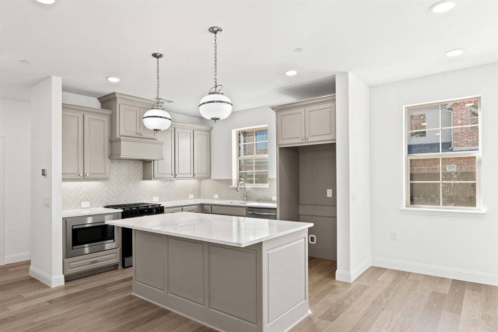 MLS# 21236668 - Built by Grenadier Investments - Ready Now! ~ Discover modern living in this stunning contemporary townhouse located within the desirable Chelsea Green at The Tribute subdivision. Constructed in 2026, this 1,987 sq ft residence features 3 spacious primary bedrooms and 3 bathrooms, including 2 full and 1 half bath, catering to both comfort and convenience. Enjoy the inviting ambiance created by vaulted ceilings and decorative lighting throughout the open living area, complete with a cozy gas fireplace. The well-appointed kitchen flows seamlessly into the dining area, perfect for gatherings. Additional highlights include a 2-car garage, central heating and cooling, and high-speed internet availability. Nestled within the Little Elm ISD, with Prestwick K-8 STEM and other educational institutions just minutes away, this home combines style, functionality, and location for an exceptional lifestyle. Don't miss this opportunity to make it yours!