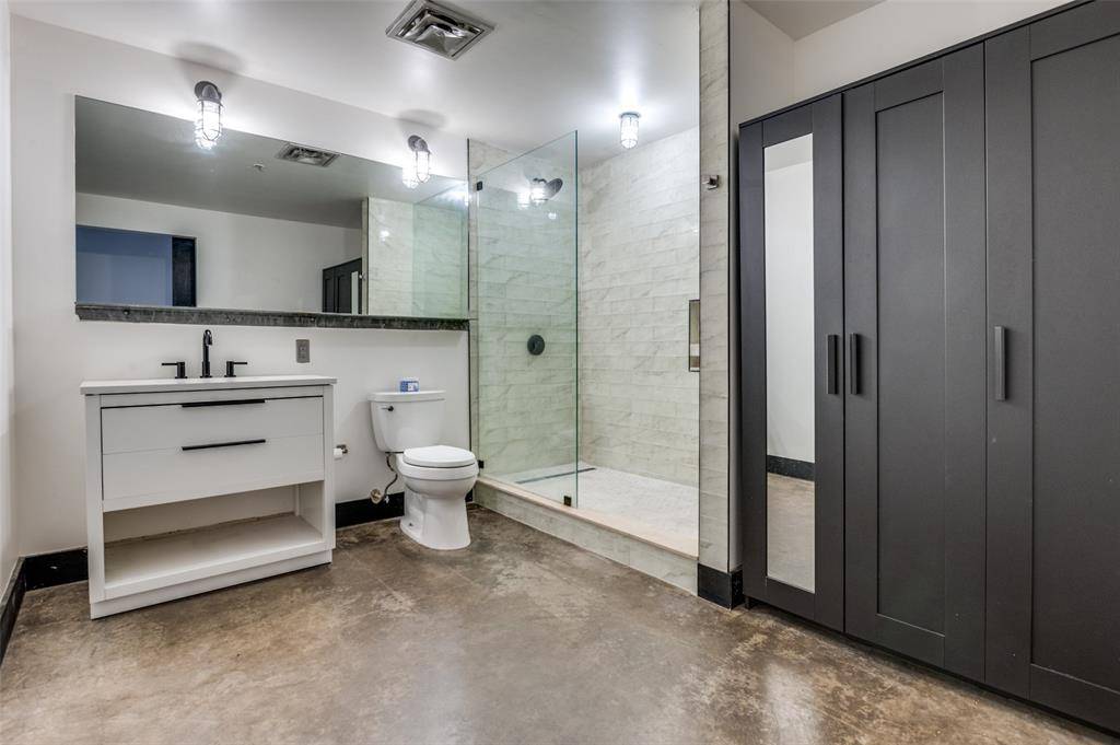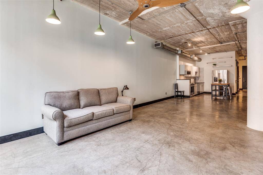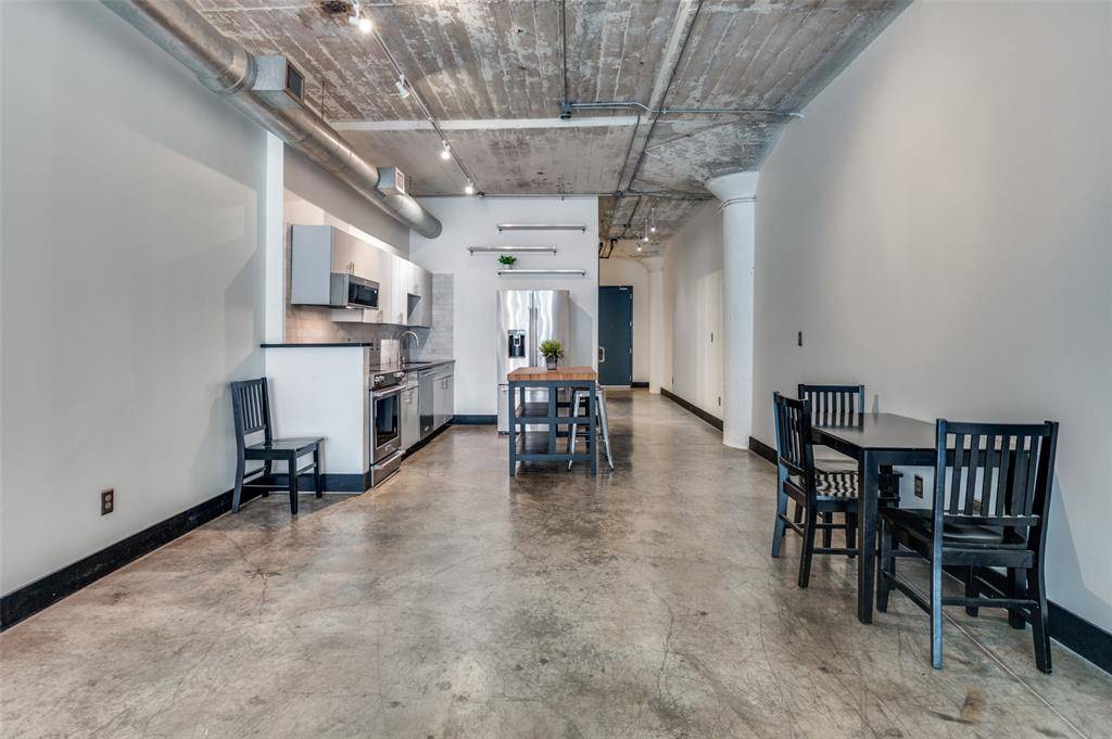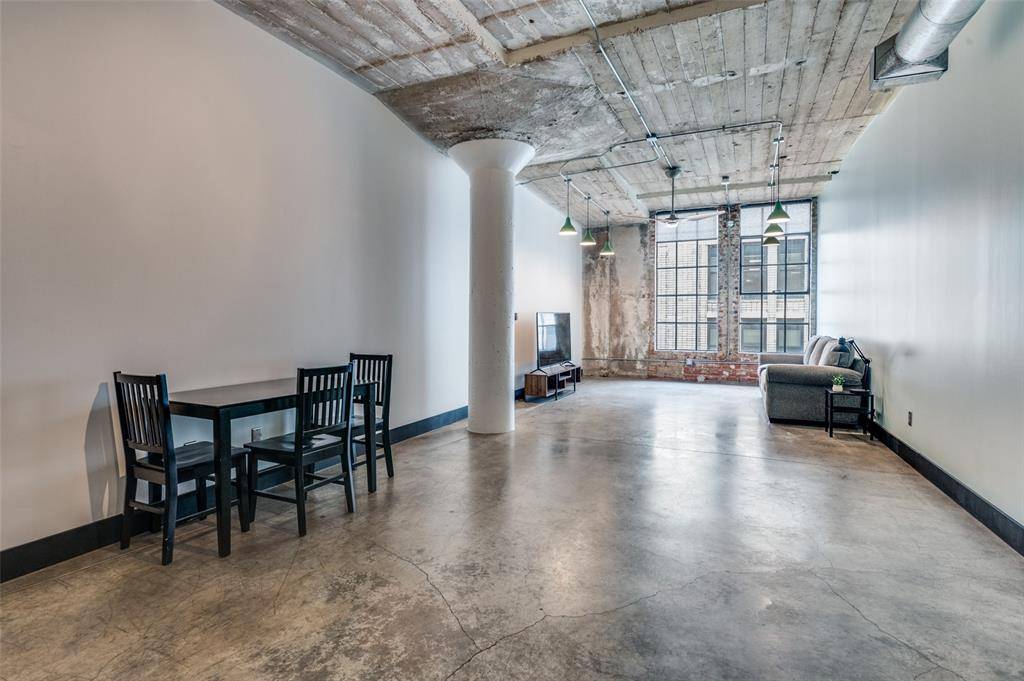 LOCK & LEAVE while you WALK, EAT & SHOP! Discover a rare blend of history and modern living in the heart of downtown Dallas Historic District with this exceptional loft featuring 9th floor views! Housed in a landmark building that once served as the former WFAA broadcasting station and Santa Fe Terminal, this residence offers timeless character paired with upscale amenities, including a rooftop POOL, fitness center, yoga studio, concierge service, GATED parking, & same-level storage. Located on the 9th floor, this stunning loft showcases soaring ceilings, exposed brick, and striking concrete floors that seamlessly combine historic charm with modern updates. Large windows flood the space with natural light, while thoughtful upgrades such as a Nest thermostat, custom remote-control shades, and designer lighting enhance both comfort and style. The beautifully renovated bathroom features a spacious walk-in shower with a stone floor and a sleek contemporary vanity. The kitchen is equally impressive, complete with stainless steel appliances, modern cabinetry, granite countertops, and a stylish stone backsplash. Refrigerator, washer, and dryer are all included, making this home truly move-in ready. * * Monthly HOA dues cover the pool, gym, parking, storage, PLUS water, trash, internet, concierge services, and on-site management for easy, low-maintenance living. * * Perfectly situated just one block from the vibrant AT&T Discovery District and minutes from Dallas Farmers Market and an array of popular dining and nightlife destinations, this one-of-a-kind loft offers an unbeatable urban lifestyle.