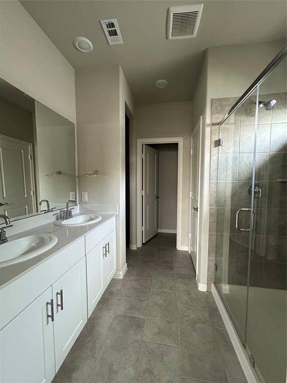 The spacious primary bedroom offers comfort and style, while the bathroom features dual sinks and a walk-in closet. Enjoy sunny days in the covered patio, ideal for relaxing or hosting guests.