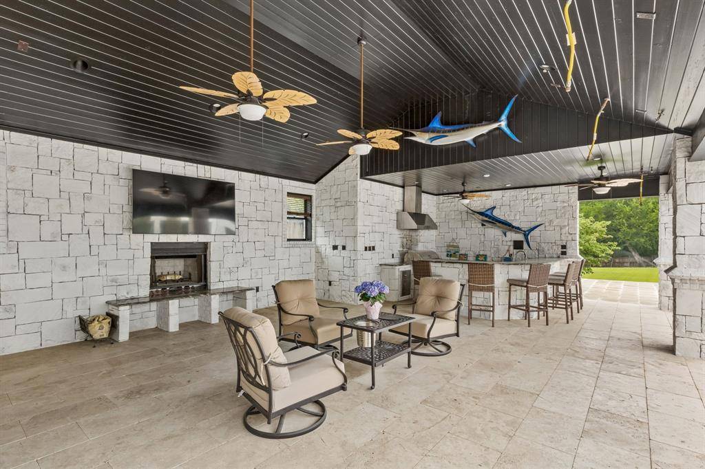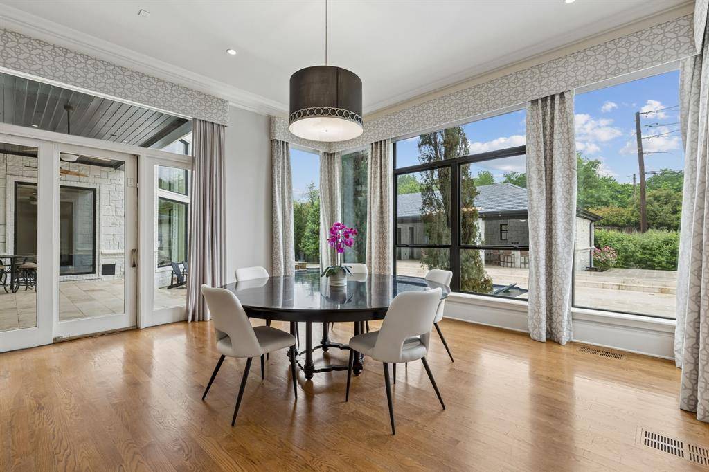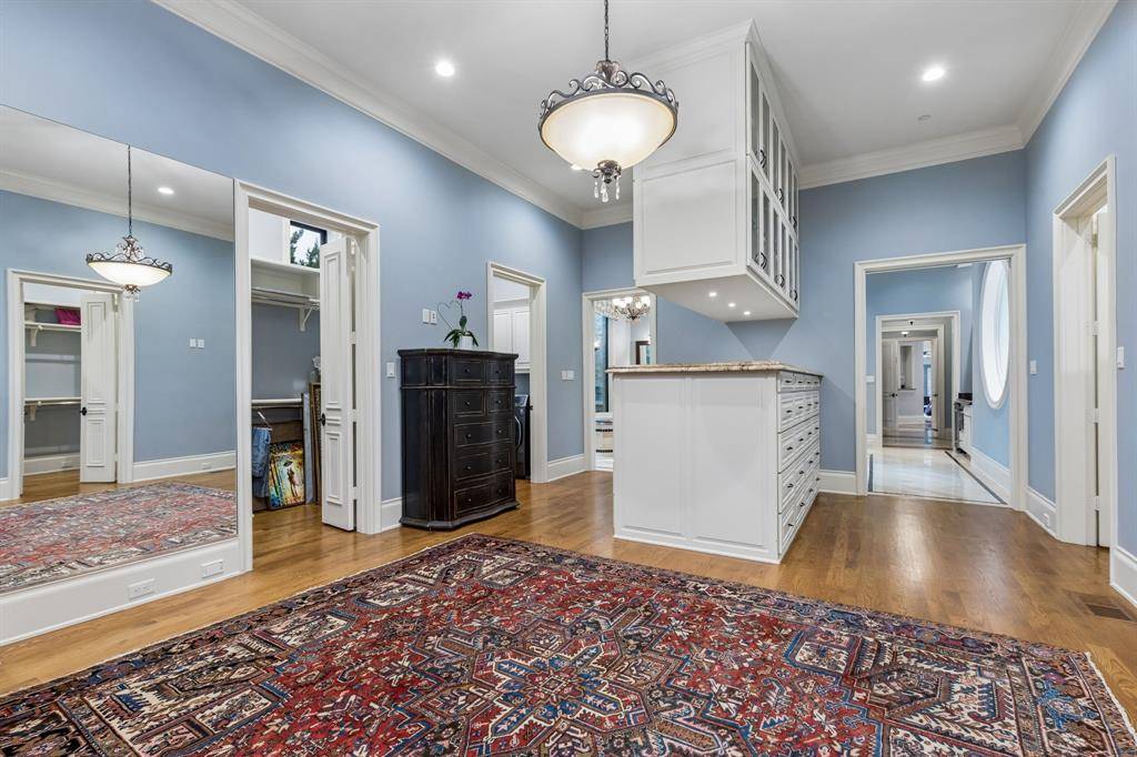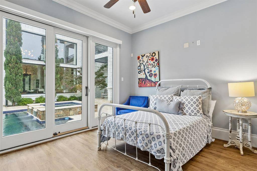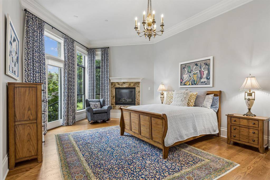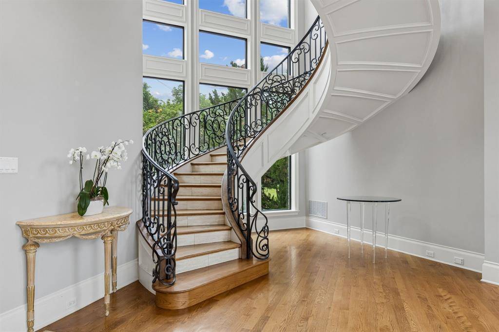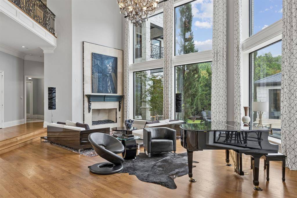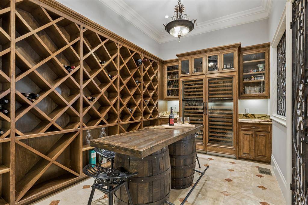 Set on a beautifully landscaped acre in coveted Bluffview, this elegant estate pairs timeless architecture with refined modern comfort, creating an exceptional indoor-outdoor lifestyle. A dramatic marble entry with soaring 25-foot ceilings and a sweeping staircase sets the tone, opening to expansive, light-filled living spaces designed for both everyday living and entertaining. At the heart of the home, the chef's kitchen is anchored by an impressive 15-by-7-foot marble island with seating for ten. Outfitted with Wolf appliances, dual dishwashers, a butler's pantry, and a custom walk-in wine room, it flows effortlessly into the surrounding living and dining areas, all of which open to the main patio. The private primary wing offers a peaceful retreat, complete with two fireplaces, a sitting area, morning bar, and direct access to a secluded patio with a newly built gas fire feature. A spiral staircase leads to a dedicated second level with four oversized walk-in closets, while the suite also includes private laundry and a flexible bonus space nearby. Each additional bedroom is generously sized and accompanied with its own en-suite bath and walk-in closet. Upstairs, a spacious family and game room with a full kitchen is complemented by a theater room, craft space, additional laundry, and elevator access. A gorgeous, oversized office provides the ultimate work-from-home environment, featuring a built-in library, dual work areas, a central lounge with fireplace, and a private patio. Outdoors, the grounds rival a private resort, showcasing a stunning pool and spa, professional landscaping, a striking crescent-shaped gas fire feature, and a fully equipped outdoor kitchen. A 969-square-foot guest house with a bath adds flexibility for visitors or extended stays. With eight fireplaces throughout, the home is layered with warmth and ambiance. A true Bluffview lifestyle estate, thoughtfully designed for elevated living, comfort, and unforgettable entertaining.