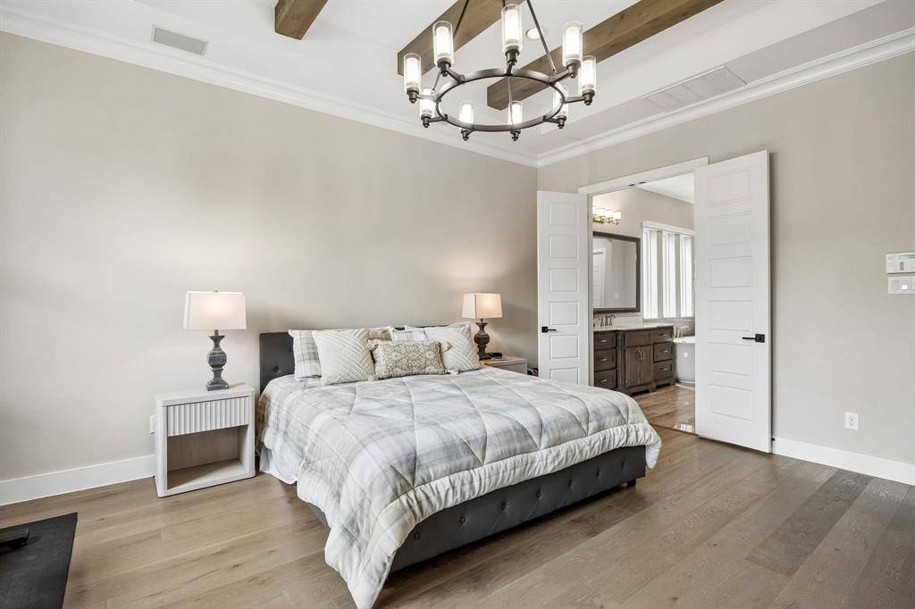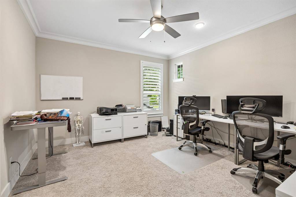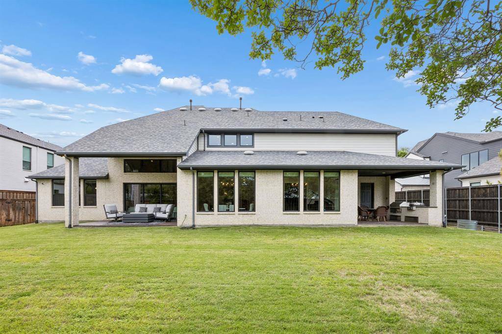 The main level includes the primary suite, a secondary bedroom, a media room, and a sunroom, while a spacious game room is located upstairs. The primary suite is a true retreat with cedar beam, a spa-inspired bath featuring dual vanities, a freestanding tub, and an expansive walk-in shower with dual rain head. Outdoor living is exceptional, with two rear covered porches and a fully equipped kitchen complete with honed granite countertops, EVO griddle, Memphis smoker, and ample storage. The oversized backyard offers plenty of room for a future pool and is enclosed by an 8-foot board-on-board cedar fence for added privacy. Additional highlights include dual laundry rooms, a full security system, atoms speakers in the media, tankless water heaters, plantation shutters, and an oversized three-car garage with epoxy flooring.