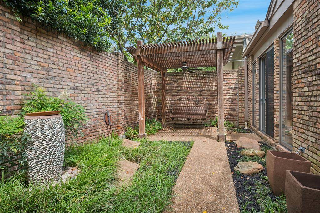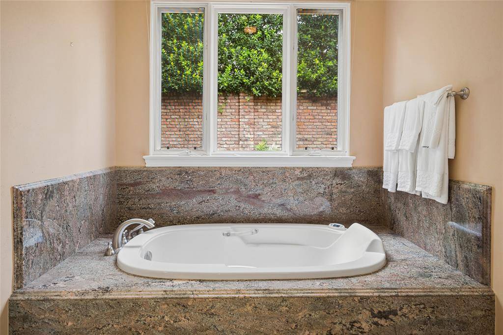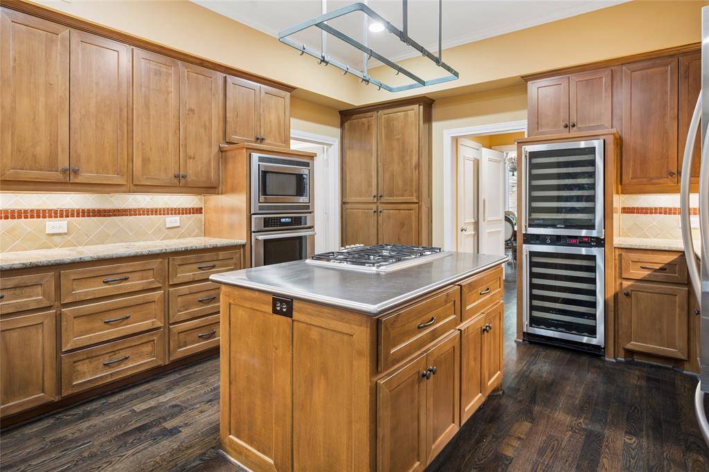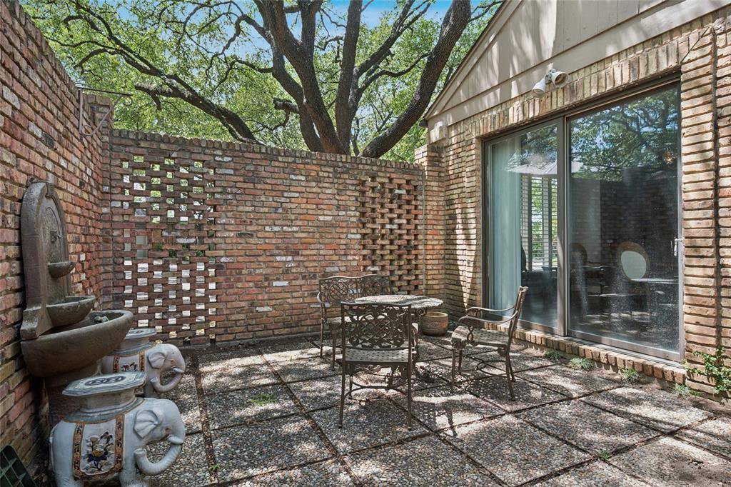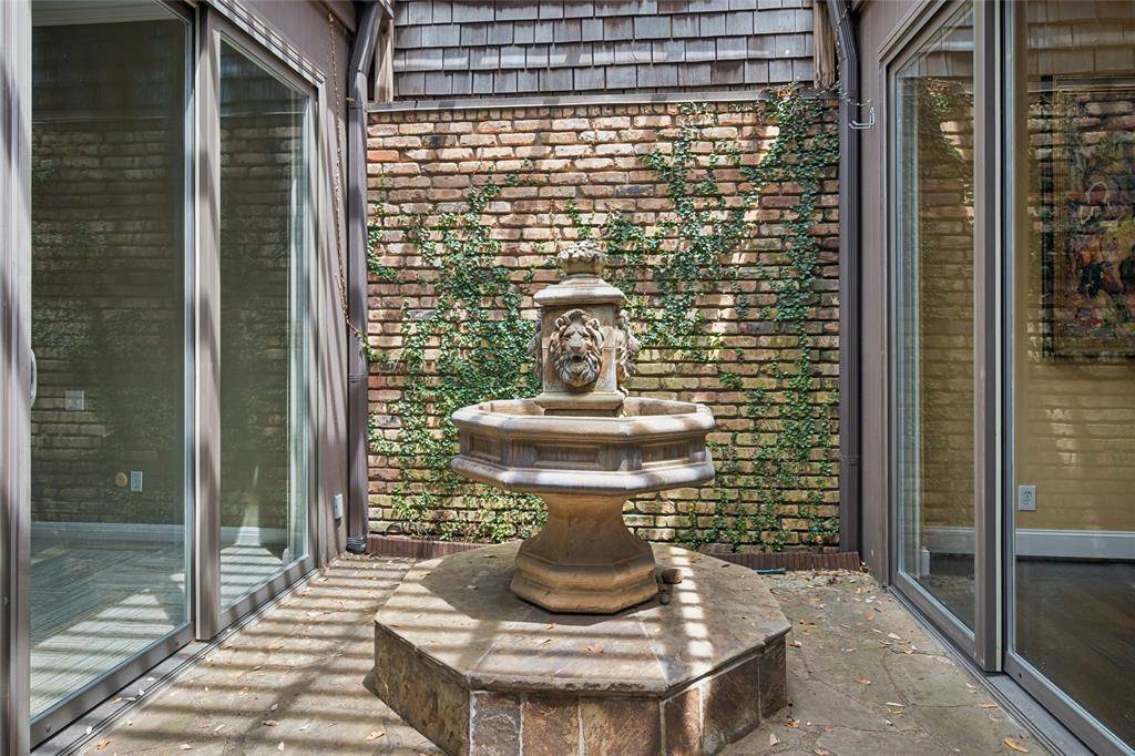 Sophisticated single-story estate set on a secluded, wooded lot in a highly desirable and prestigious neighborhood. A dramatic 20-foot foyer with 10-foot ceiling entry creates an impressive welcome, drawing the eye to a stunning fountain courtyard at the end of the hall. Designed for both intimate family living and grand-scale entertaining, the home features a free-flowing floorplan filled with natural light, 10-foot ceilings, and uninterrupted, generously scaled wall space ideal for displaying large art collections, along with Texas-sized niches to showcase sculpture. Crown moulding throughout adds a refined architectural finish. The breakfast nook enjoys tranquil views of a fountain courtyard, offering a serene start to the day. The chef's kitchen is centered around a substantial island and features a premier-sized gas cooking unit, perfect for culinary enthusiasts. Wine connoisseurs will appreciate the convenience of dual wine refrigeration units. Wood floors cover the majority of the home, adding warmth and continuity.