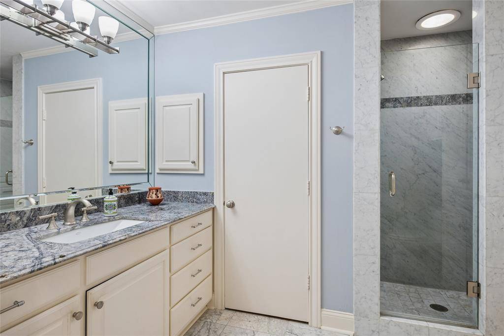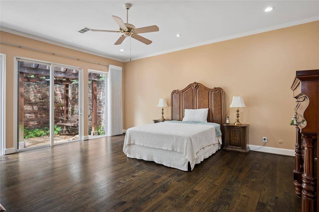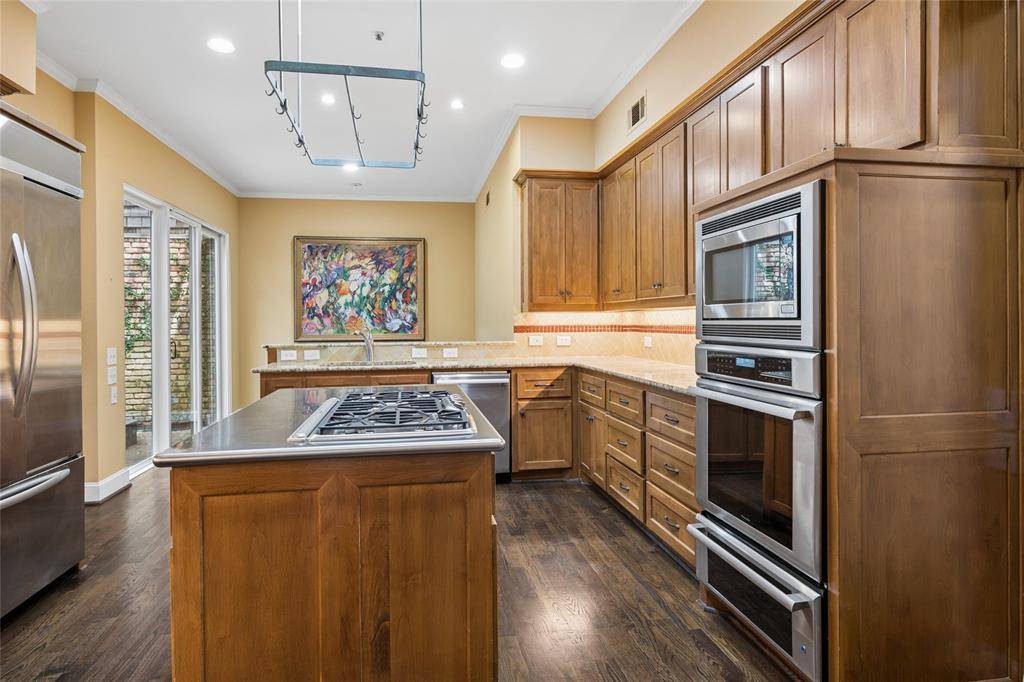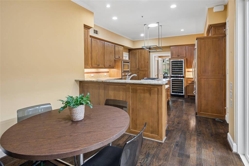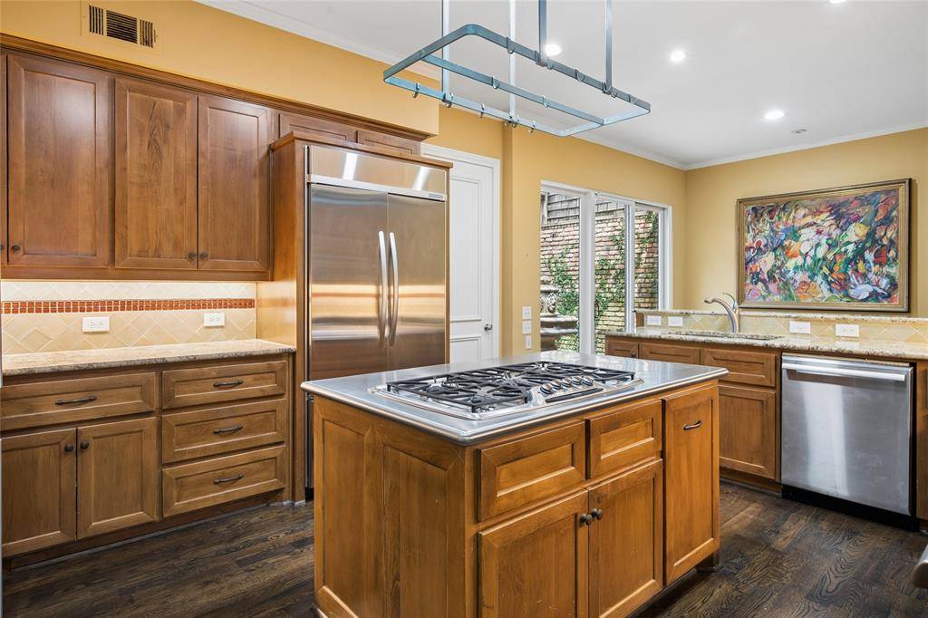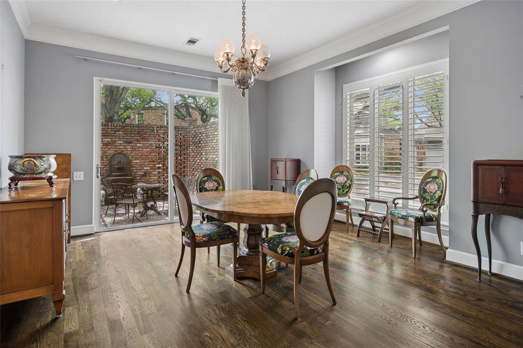 Sophisticated single-story estate set on a secluded, wooded lot in a highly desirable and prestigious neighborhood. A dramatic 20-foot foyer with 10-foot ceiling entry creates an impressive welcome, drawing the eye to a stunning fountain courtyard at the end of the hall. Designed for both intimate family living and grand-scale entertaining, the home features a free-flowing floorplan filled with natural light, 10-foot ceilings, and uninterrupted, generously scaled wall space ideal for displaying large art collections, along with Texas-sized niches to showcase sculpture. Crown moulding throughout adds a refined architectural finish. The breakfast nook enjoys tranquil views of a fountain courtyard, offering a serene start to the day. The chef's kitchen is centered around a substantial island and features a premier-sized gas cooking unit, perfect for culinary enthusiasts. Wine connoisseurs will appreciate the convenience of dual wine refrigeration units. Wood floors cover the majority of the home, adding warmth and continuity.